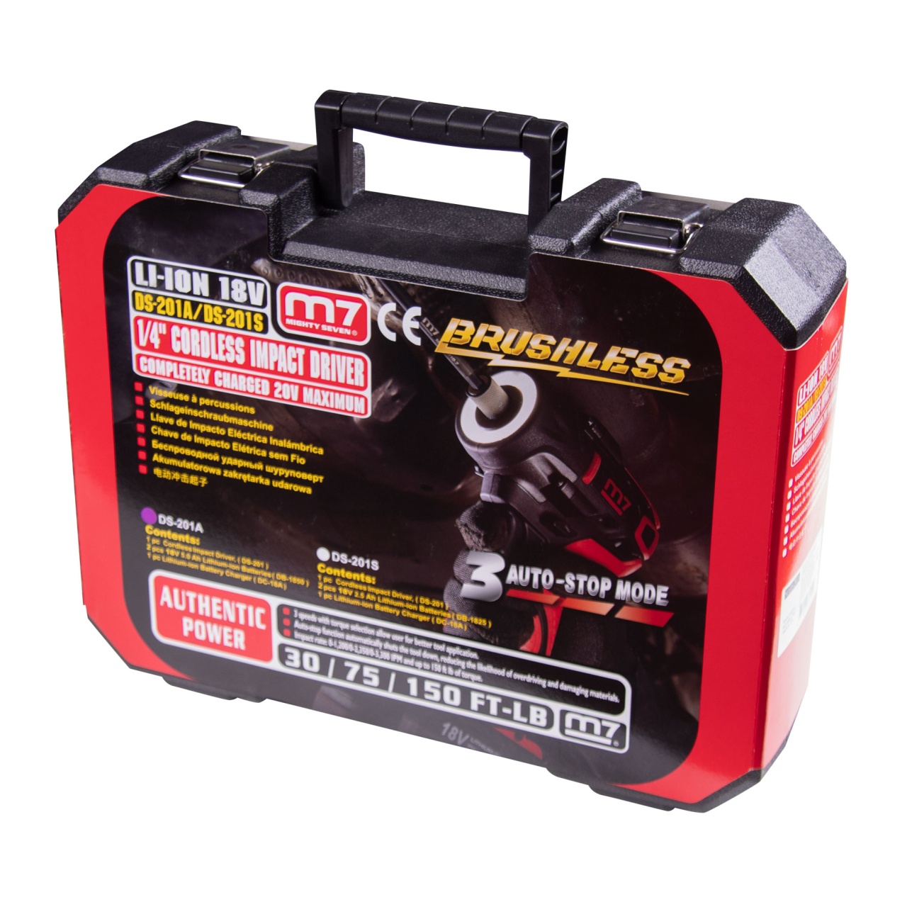 Тип патрона Для бит 1/4" (6,35 мм) с проточкой, быстрозажимной Размер крепежа М4-М12 Макс. крутящий момент 203 Нм Частота ударов 0–1200 / 0–2350 / 0–3300 уд/мин Функция плавного пуска Есть Тип двигателя Бесщёточный (BRUSHLESS MOTOR) Аккумулятор (2 шт. в комплекте) 18 В, Li-Ion 5.0 Ач Быстрая зарядка Есть (50 минут) Материалы Сталь, пластик, пластик PE-HD (кейс) Индивидуальная упаковка Пластиковый кейс, картонный рукав в фирменном стиле бренда MIGHTY SEVEN Размеры кейса 457×330×112 мм Вес 5,633 кг