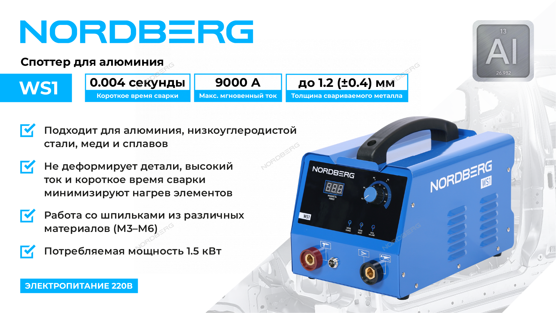 Точечный сварочный аппарат для алюминия NORDBERG WS1 – высококачественное оборудование для выполнения большинства операций в автосервисном кузовном ремонте.