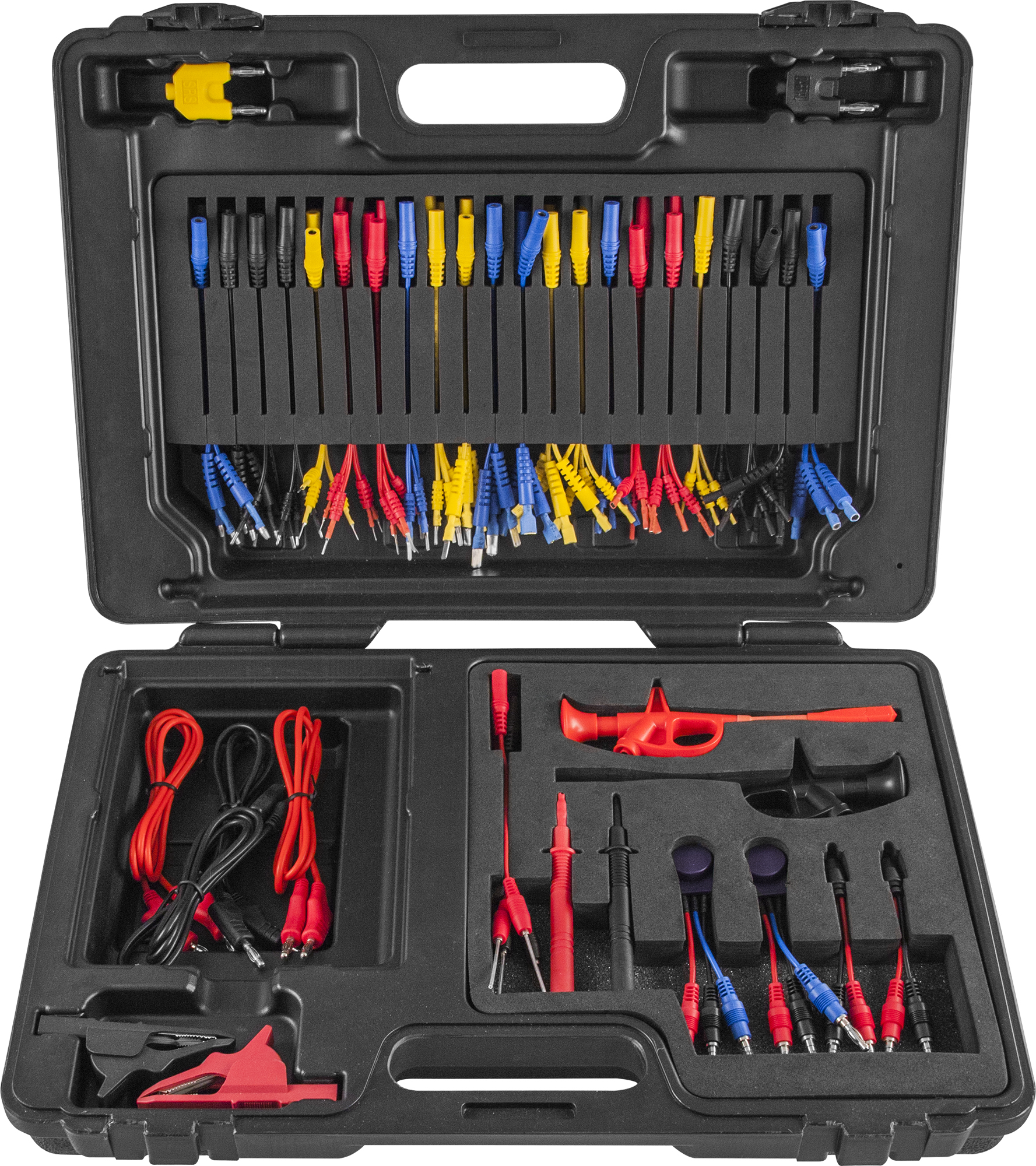 Универсальный набор применяется для контроля работоспособности элементов низковольтных систем электрооборудования автомобильной и автотракторной техники. Комплект содержит: переменное сопротивление (5КΩ), светодиодный тестер полярности, разъем для установки и проверки SRS (датчика подушки безопасности), зажимы "крокодил", набор игольчатых щупов, разветвитель 1х2, коннекторы с игольчатыми зажимами и набор клемных коннекторов, для круглых и плоских клемм различных производителей.