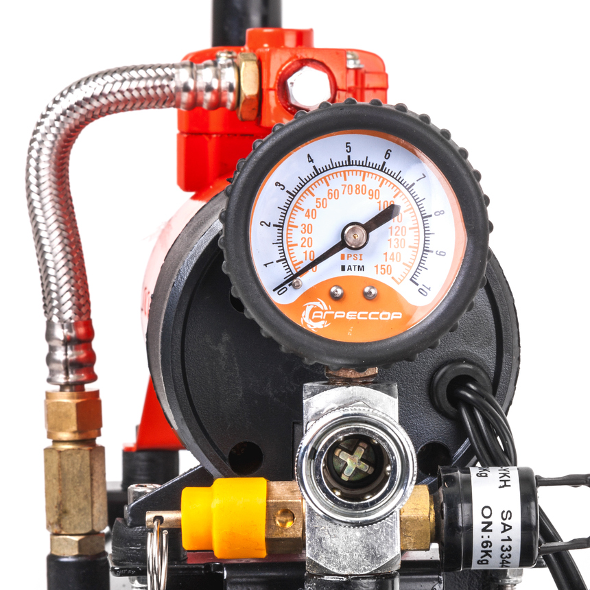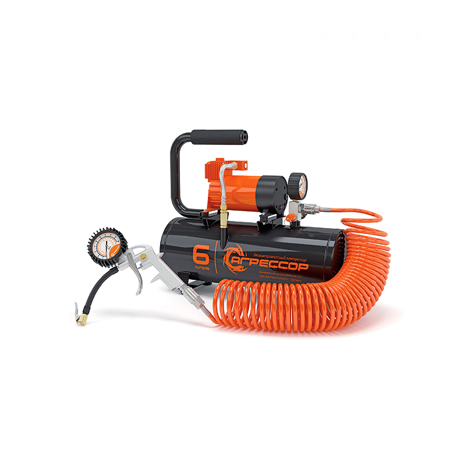 Автомобильный металлический компрессор с ресивером. Производительность — 35 л/мин. Объем ресивера — 6 литров. Время заполнения бака — 4 минуты. В комплекте идет переходник для подключения пневмоинструмента. Компрессор питается от прикуривателя или аккумулятора (переходник в комплекте). Гарантия 3 года.