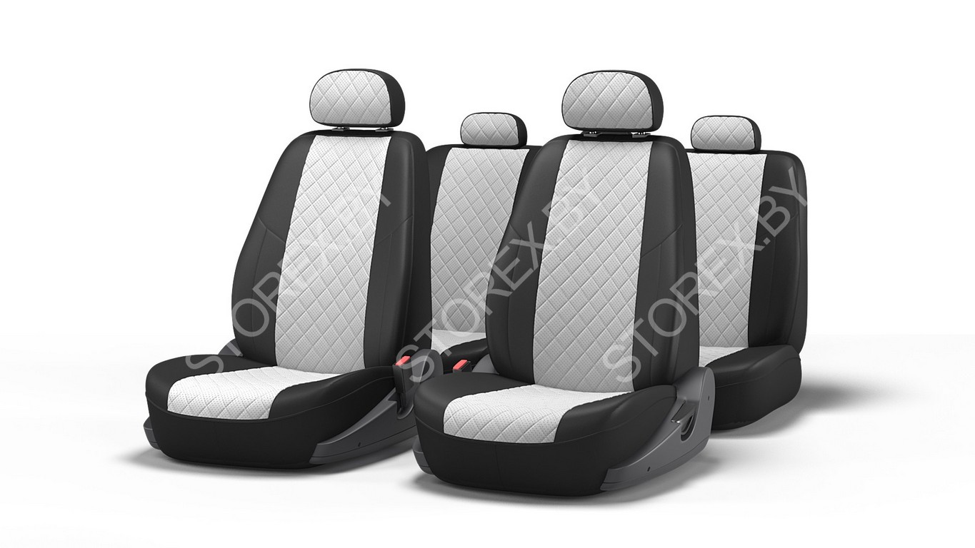 - Тыльные и боковые части чехлов сделаны из гладкой экокожи, а центральная часть из перфорированной экокожи.