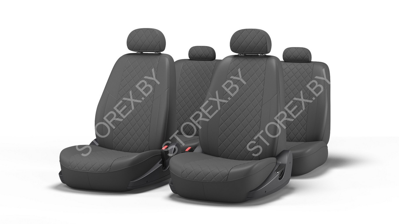 - Тыльные и боковые части чехлов сделаны из гладкой экокожи, а центральная часть из перфорированной экокожи.
