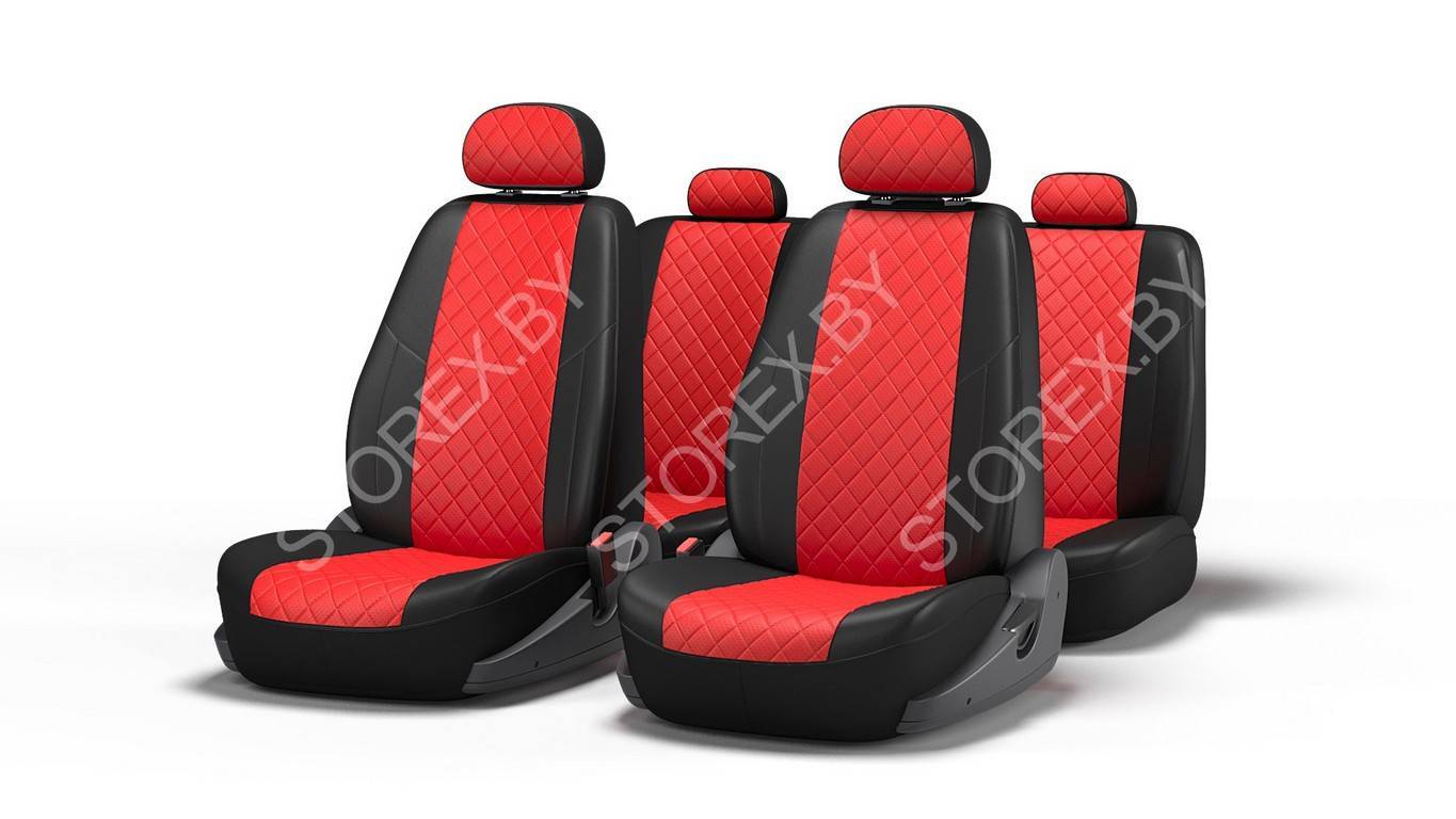 - Тыльные и боковые части чехлов сделаны из гладкой экокожи, а центральная часть из перфорированной экокожи.