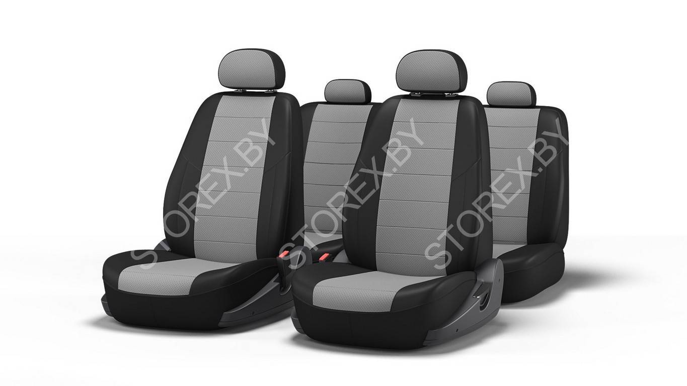 - Тыльные и боковые части чехлов сделаны из гладкой экокожи, а центральная часть из перфорированной экокожи.