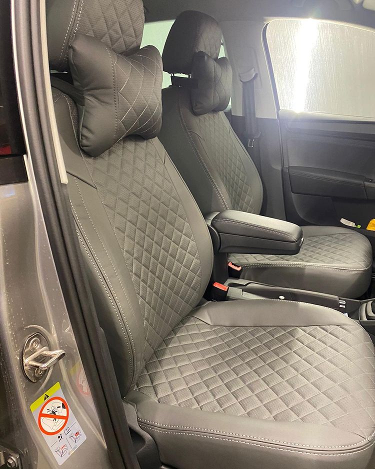 - Чехлы изготовлены со всеми технологическими отверстиями и не нарушают заводскую функциональность салона.