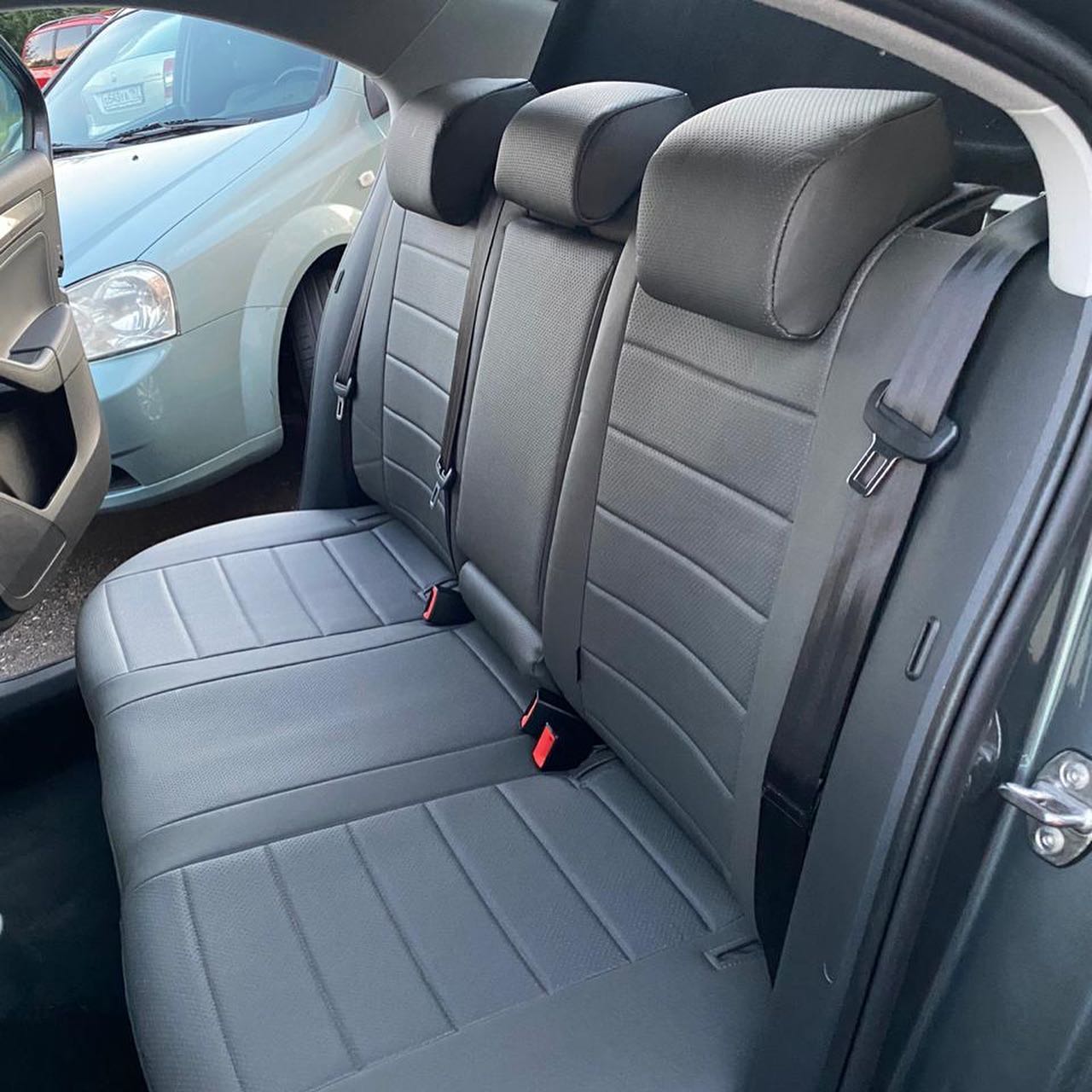 - Тыльные и боковые части чехлов сделаны из гладкой экокожи, а центральная часть из перфорированной экокожи.