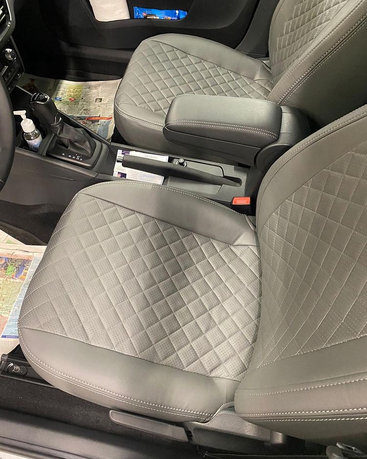 - Чехлы изготовлены из матовой экокожи Аригон с полиуретановым покрытием на хлопковой основе.
