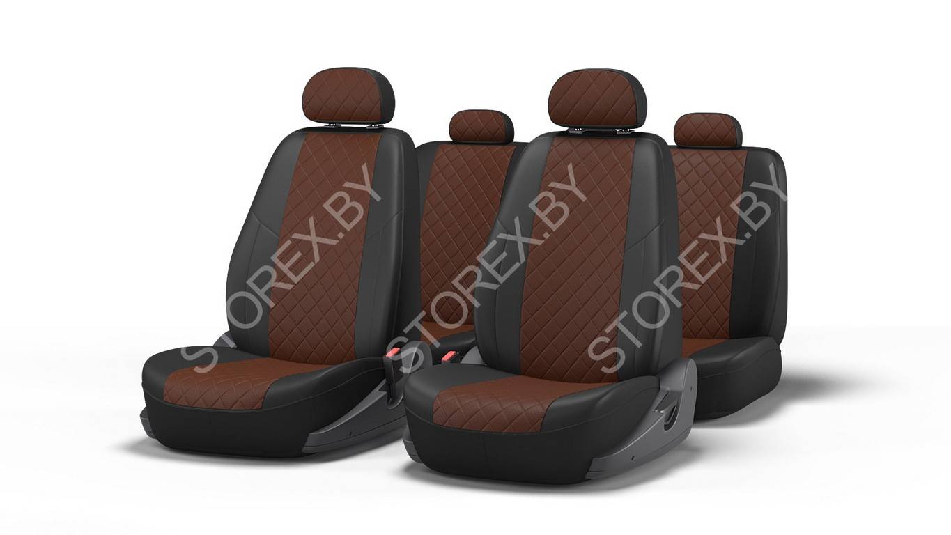 - Тыльные и боковые части чехлов сделаны из гладкой экокожи, а центральная часть из перфорированной экокожи.