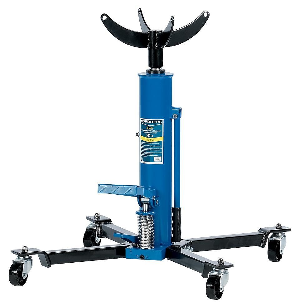 Трансмиссионная гидравлическая cтойка телескопическая N3407 предназначена для снятия и установки автомобильных коробок передач, элементов выхлопной системы, топливных баков и т.п.