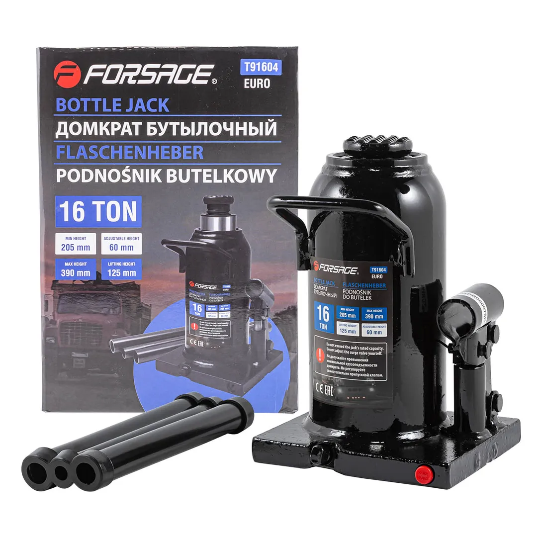Домкрат бутылочный гидравлический с клапаном широко применяется на производствах, шиномонтажах, станциях технического обслуживания, а также в частных гаражах. Позволяет эффективно и безопасно поднять транспортное средство или иной груз с целью проведения ремонтных работ. Преимущества бутылочного домкрата: При относительно небольшом прикладываемом усилии имеет достаточно большую грузоподъемность и высокий КПД. Отличная точность фиксации груза, плавность хода штока. Домкрат оснащен специальным предохранительным клапаном для защиты от перегрузки. Компактные размеры, мобильность и легкость транспортировки (обязательно сохранять вертикальное положение устройства для предотвращения утечки масла).