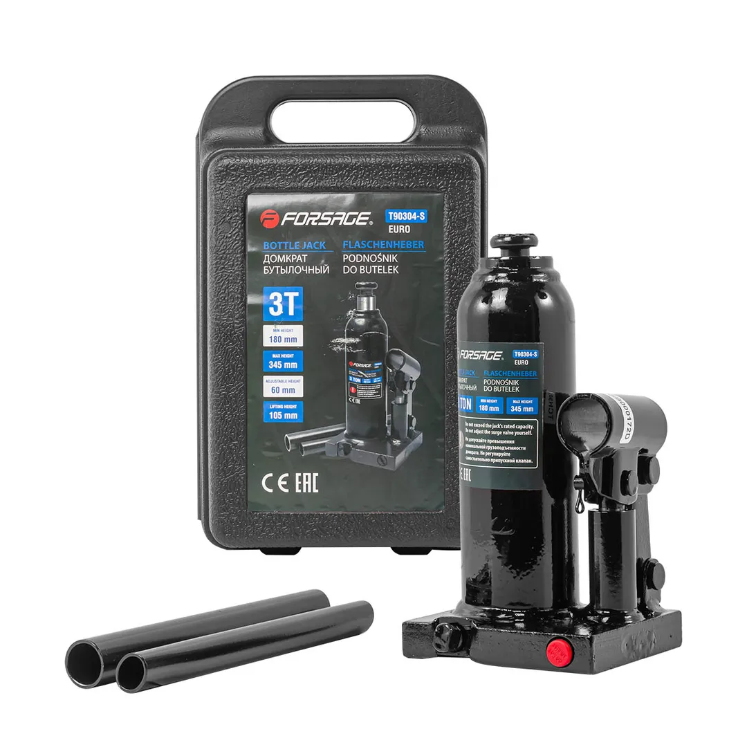 Бутылочный гидравлический домкрат. Мощное и надежное средство для поднятия и удержания автомобилей. Домкрат оснащен специальным предохранительным клапаном для защиты от перегрузки. Этот домкрат обеспечивает безопасное поднятие, что делает его отличным выбором как для автомастерских, так и для личного использования.
