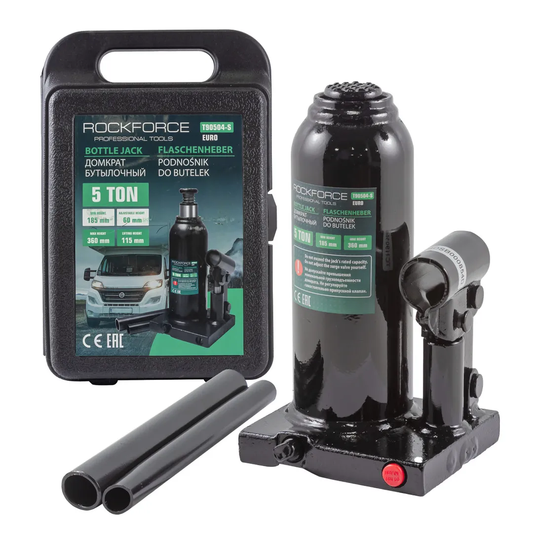 Бутылочный гидравлический домкрат - мощное и надежное средство для поднятия и удержания автомобилей. Домкрат оснащен специальным предохранительным клапаном для защиты от перегрузки. Этот домкрат обеспечивает безопасное поднятие, что делает его отличным выбором как для автомастерских, так и для личного использования.