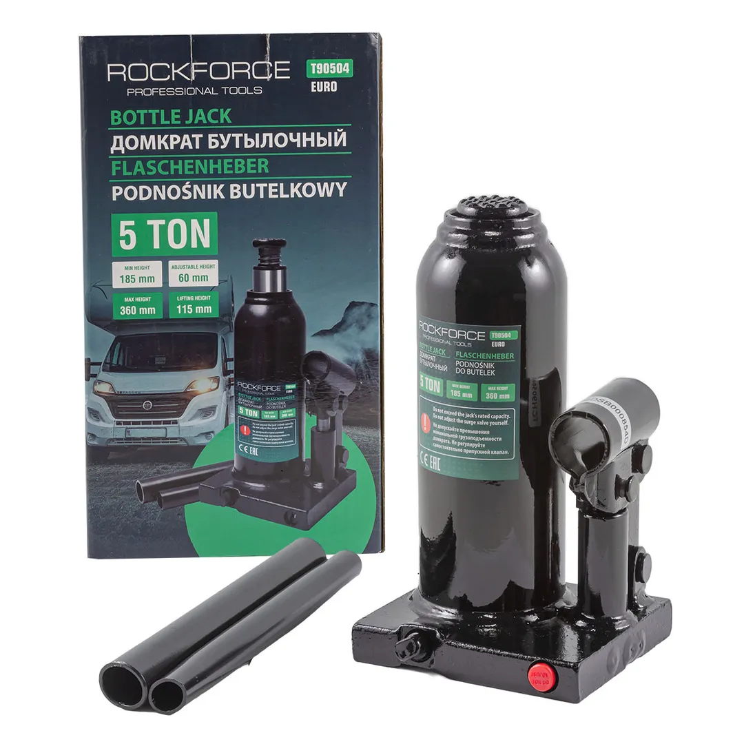 Домкрат бутылочный с клапаном автомобильный является высококачественным оборудованием, которое предназначено для подъема автомобилей в автосервисах, шиномонтажных центрах для работ по ремонту и техническому обслуживанию. Гидравлический домкрат обеспечивает высоту подъема 360 мм., высоту подхвата 185 мм, ход штока 115мм, ход винта 60мм. Рассчитан на грузоподъемность до 5 тонн. Домкрат оснащен специальным предохранительным клапаном для защиты от перегрузки.
