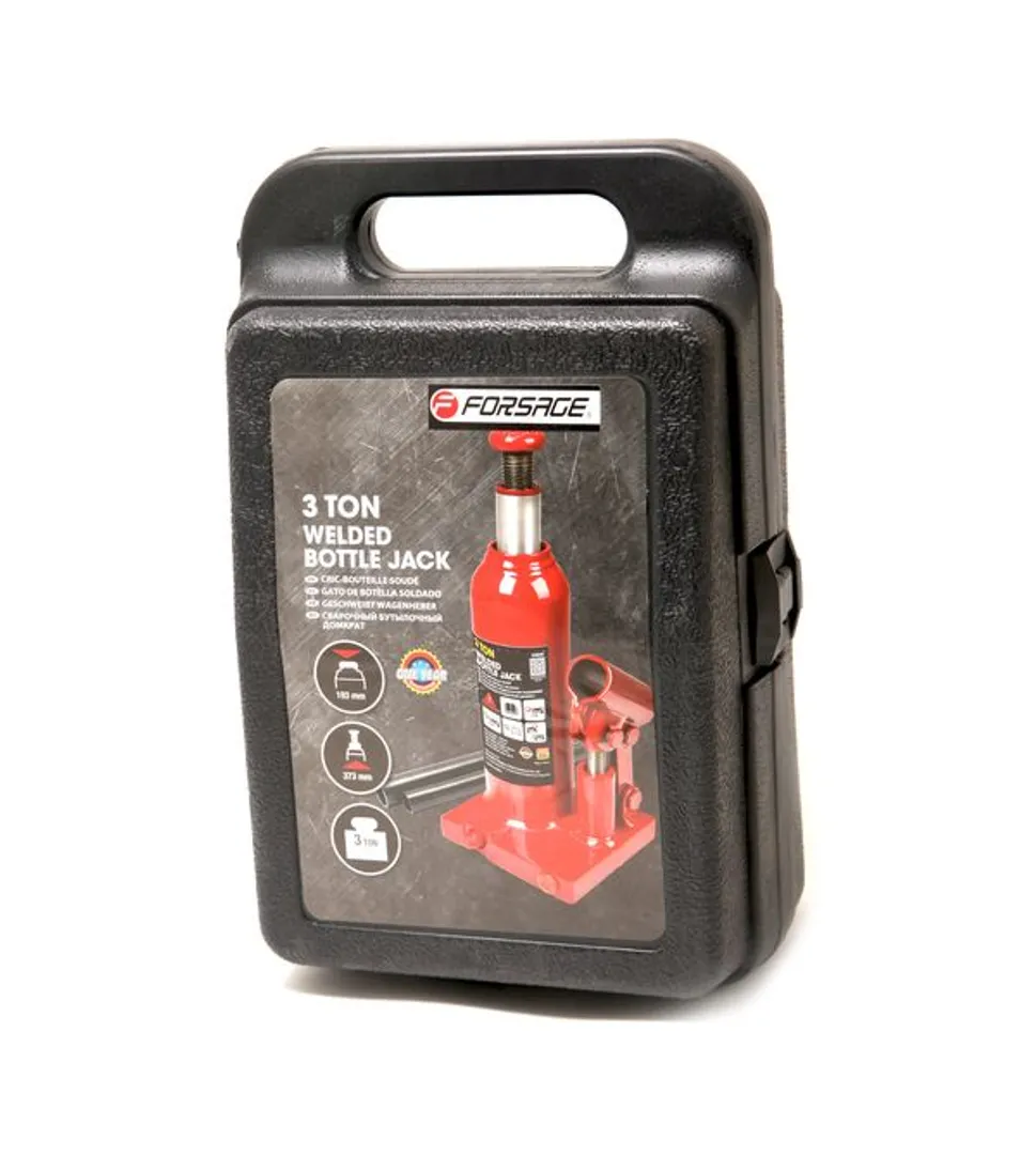 Высота подъема - 360 мм. Высота подхвата - 185 мм. Ход штока - 115мм. Ход винта - 60мм. Домкрат оснащен специальным предохранительным клапаном для защиты от перегрузки. Домкрат поставляется в пластиковом кейсе.