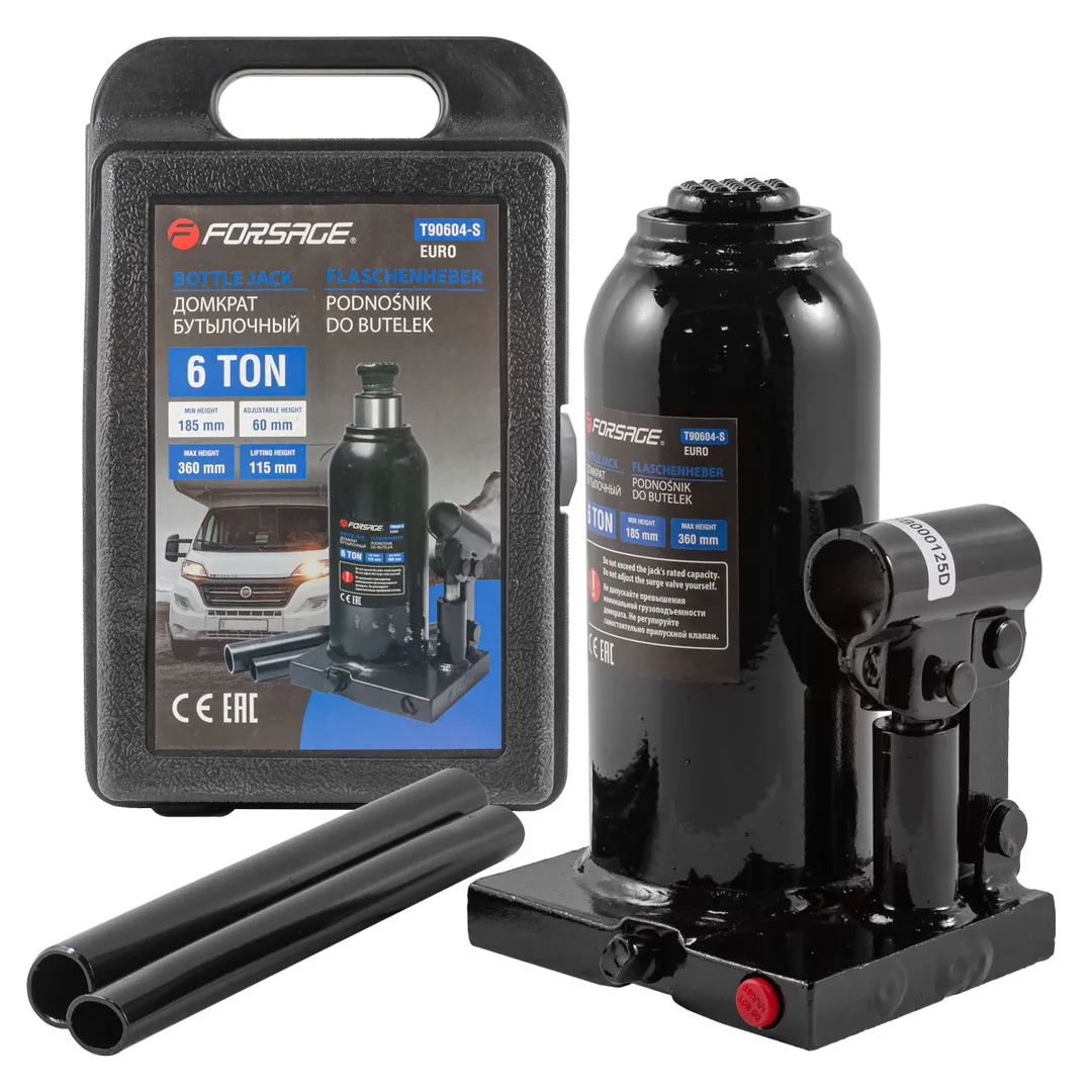 Домкрат бутылочный гидравлический с клапаном 6 тонн. Широко применяется на производствах, шиномонтажах, станциях технического обслуживания, а также в частных гаражах. Позволяет эффективно и безопасно поднять транспортное средство или иной груз с целью проведения ремонтных работ.