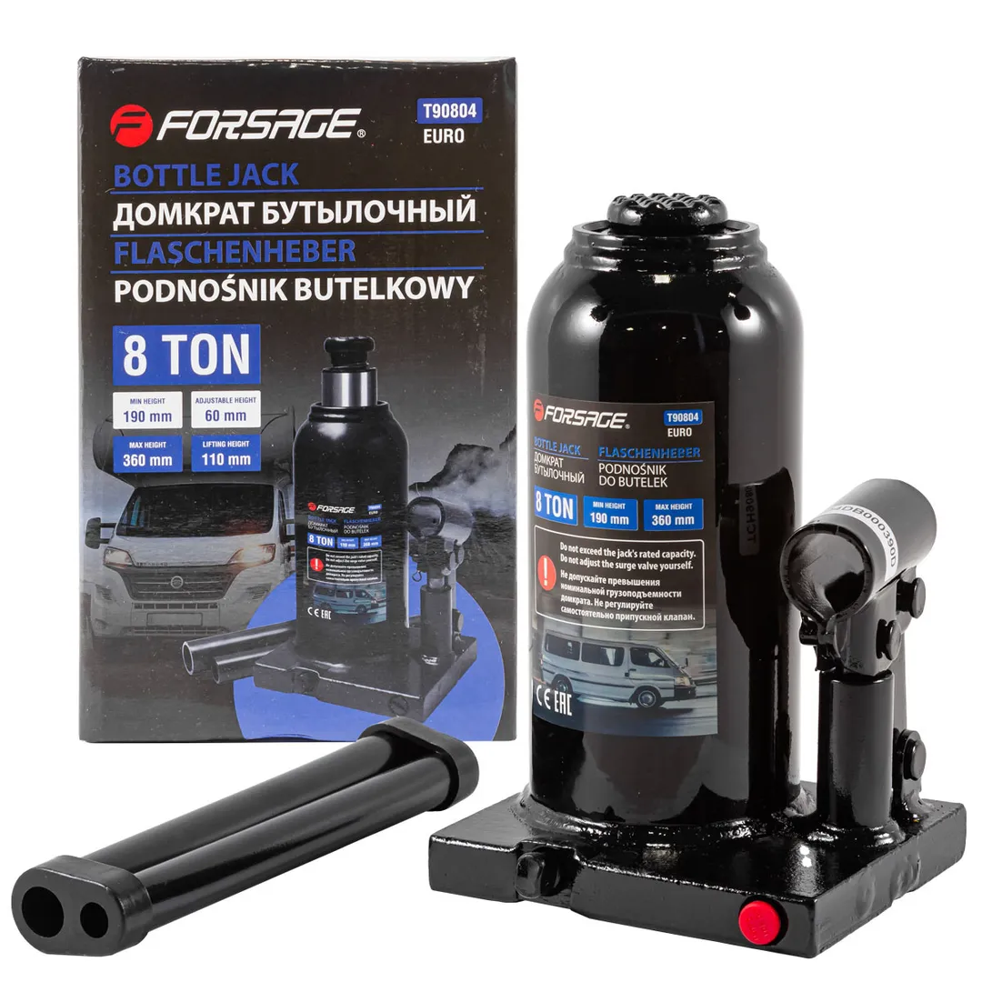 Бутылочный гидравлический домкрат. Мощное и надежное средство для поднятия и удержания автомобилей. Домкрат оснащен специальным предохранительным клапаном для защиты от перегрузки. Этот домкрат обеспечивает безопасное поднятие, что делает его отличным выбором как для автомастерских, так и для личного использования.