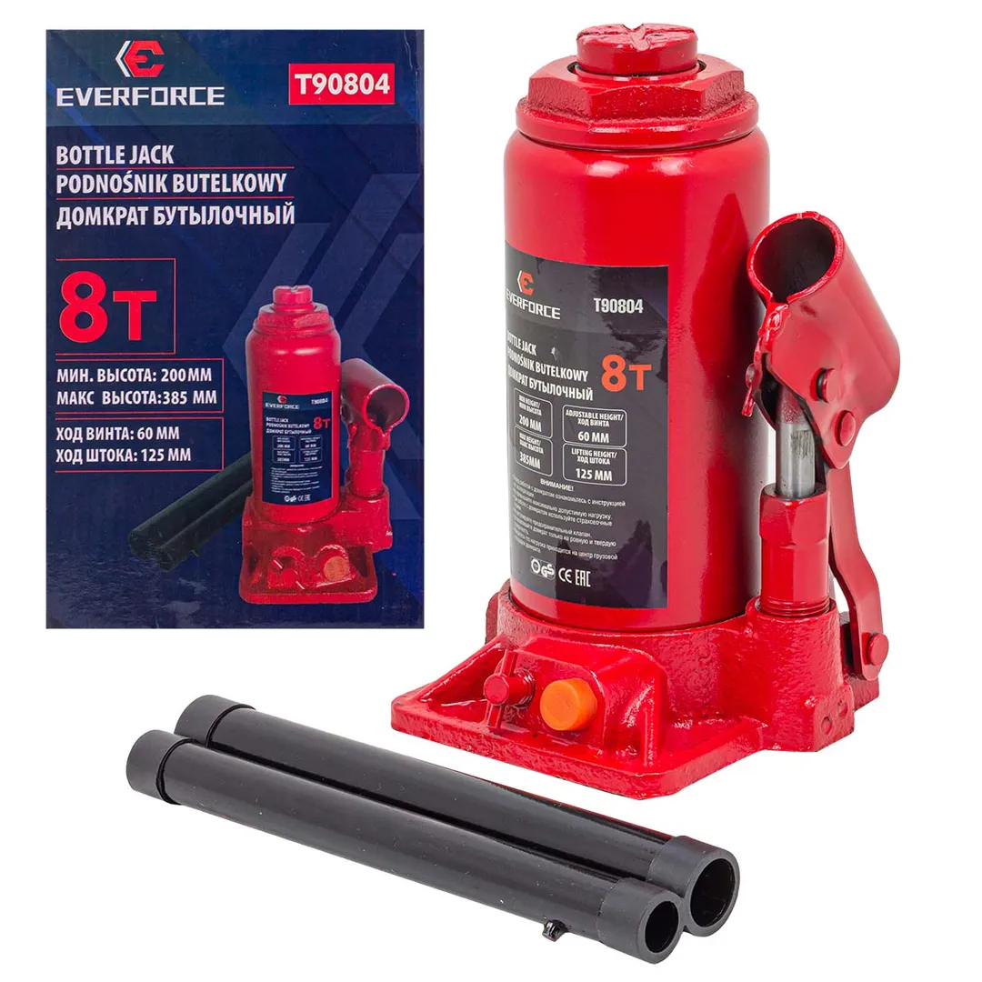 Бутылочный гидравлический домкрат. Мощное и надежное средство для поднятия и удержания автомобилей. Домкрат оснащен специальным предохранительным клапаном для защиты от перегрузки. Этот домкрат обеспечивает безопасное поднятие, что делает его отличным выбором как для автомастерских, так и для личного использования.