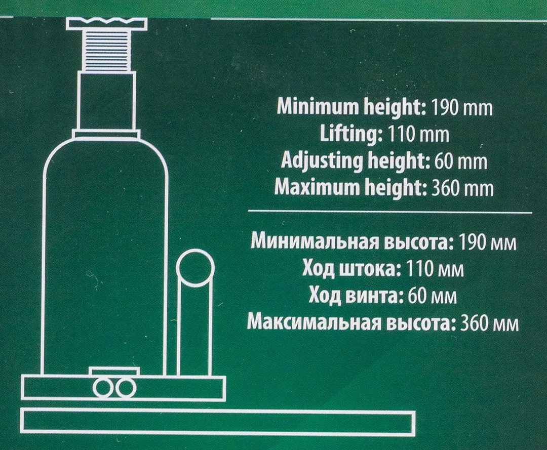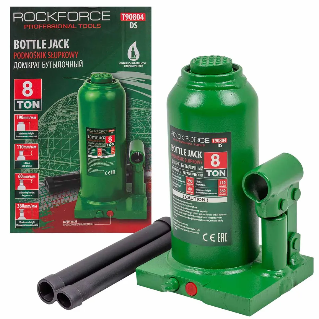Домкрат бутылочный гидравлический с клапаном широко применяется на производствах, шиномонтажах, станциях технического обслуживания, а также в частных гаражах. Позволяет эффективно и безопасно поднять транспортное средство или иной груз с целью проведения ремонтных работ. Преимущества бутылочного домкрата: При относительно небольшом прикладываемом усилии имеет достаточно большую грузоподъемность и высокий КПД. Отличная точность фиксации груза, плавность хода штока. Домкрат оснащен специальным предохранительным клапаном для защиты от перегрузки. Компактные размеры, мобильность и легкость транспортировки (обязательно сохранять вертикальное положение устройства для предотвращения утечки масла).