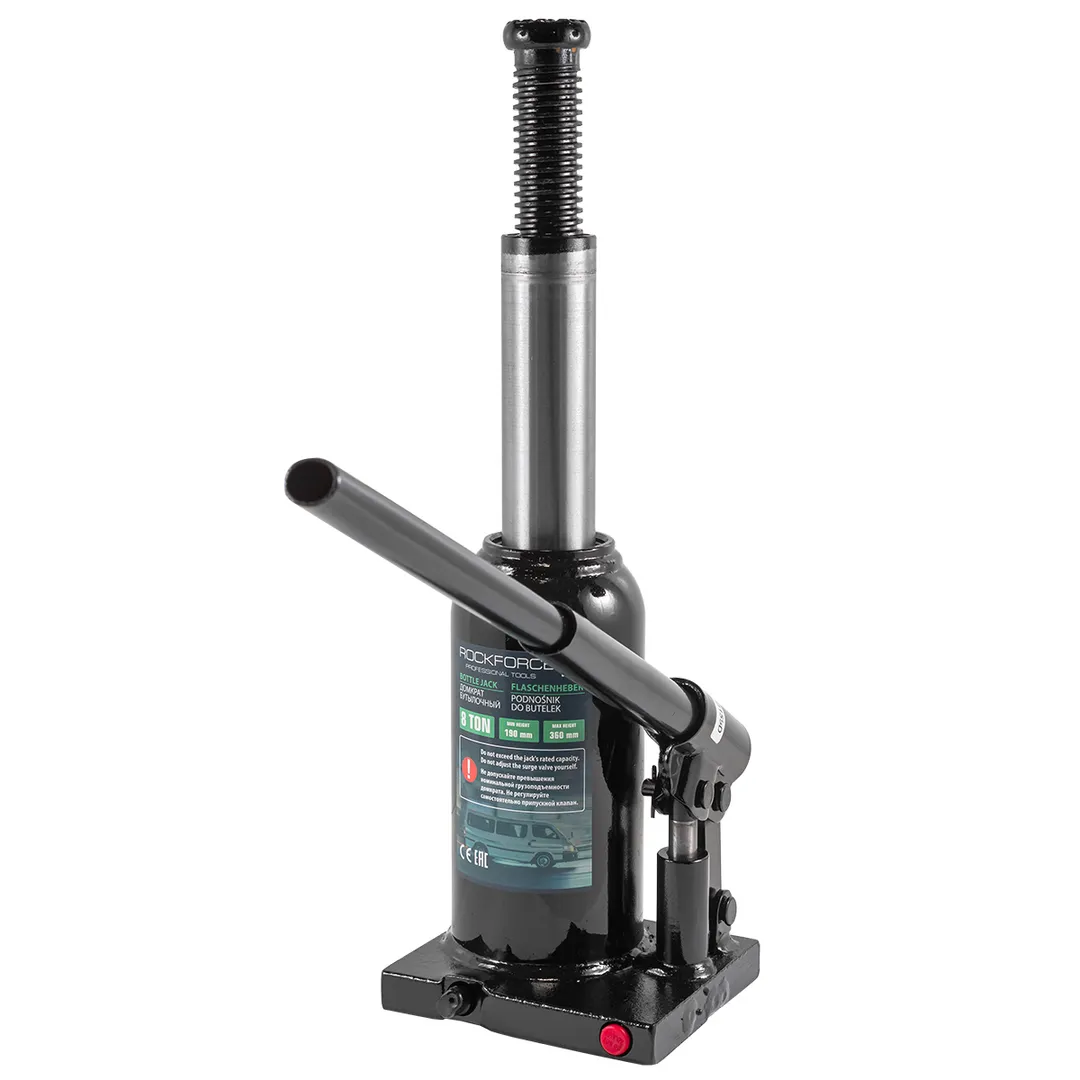 Бутылочный гидравлический домкрат - мощное и надежное средство для поднятия и удержания автомобилей. Домкрат оснащен специальным предохранительным клапаном для защиты от перегрузки. Этот домкрат обеспечивает безопасное поднятие, что делает его отличным выбором как для автомастерских, так и для личного использования.