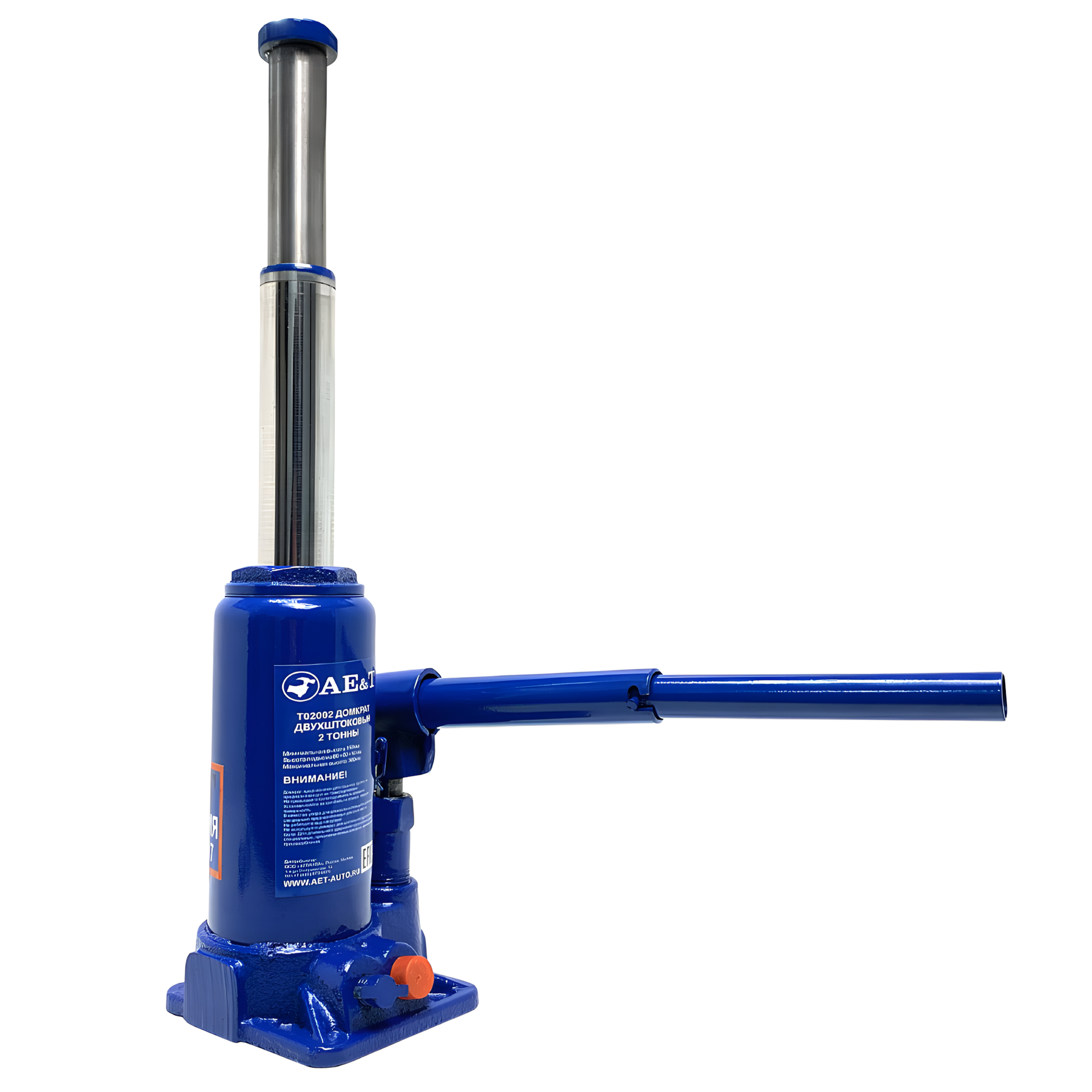 Домкрат 2-штоковый бутылочный Т02002 с предохранительным клапаном грузоподъёмностью 2 тонны.