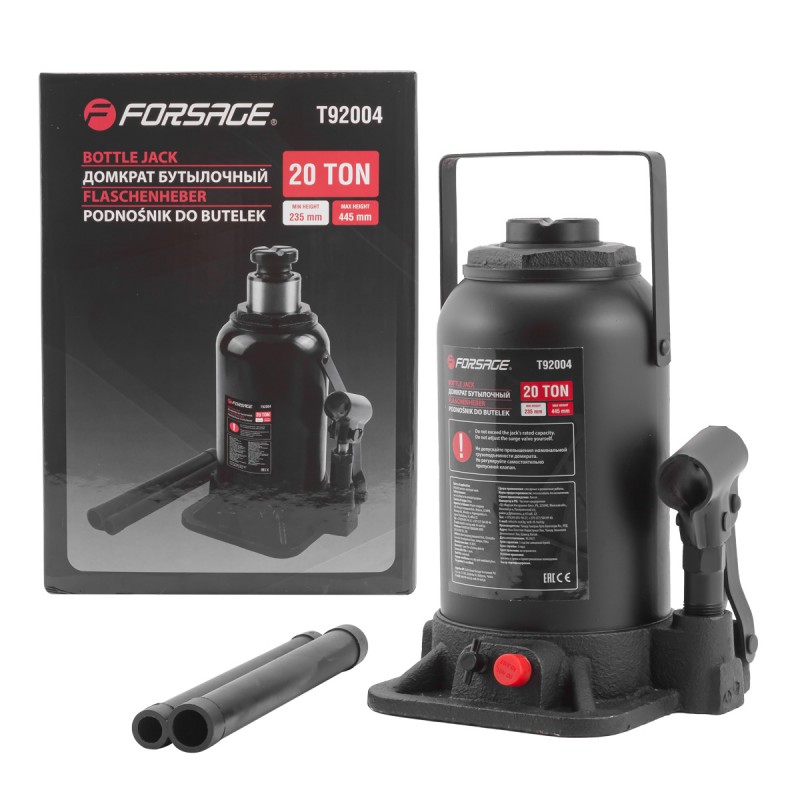 Домкрат бутылочный гидравлический 20т с клапаном (h min-235мм, h max-445мм)