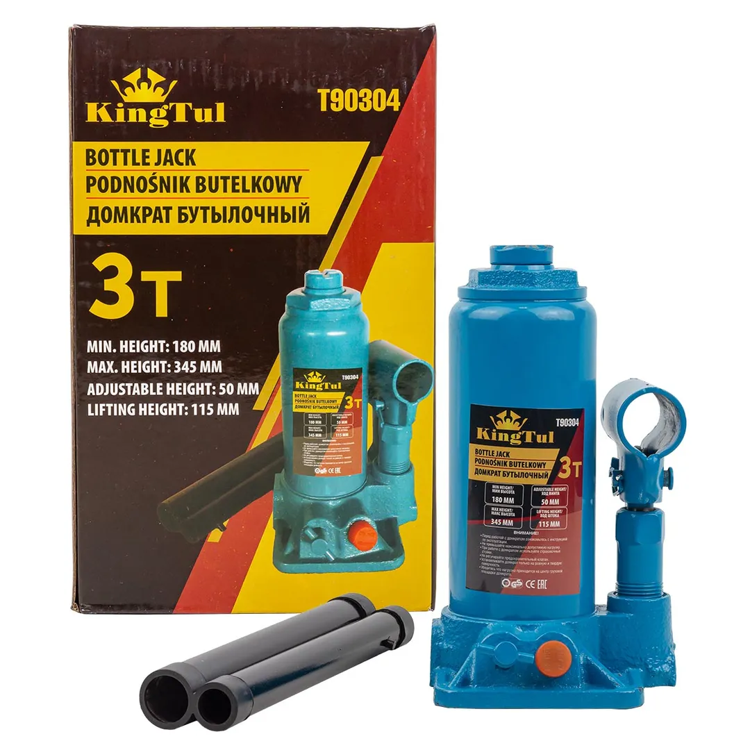 Бутылочный гидравлический домкрат. Мощное и надежное средство для поднятия и удержания автомобилей. Домкрат оснащен специальным предохранительным клапаном для защиты от перегрузки. Этот домкрат обеспечивает безопасное поднятие, что делает его отличным выбором как для автомастерских, так и для личного использования.