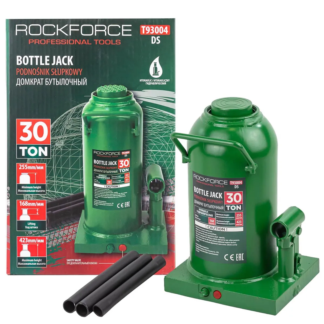 Бутылочный гидравлический домкрат. Мощное и надежное средство для поднятия и удержания автомобилей. Домкрат оснащен специальным предохранительным клапаном для защиты от перегрузки. Этот домкрат обеспечивает безопасное поднятие, что делает его отличным выбором как для автомастерских, так и для личного использования.