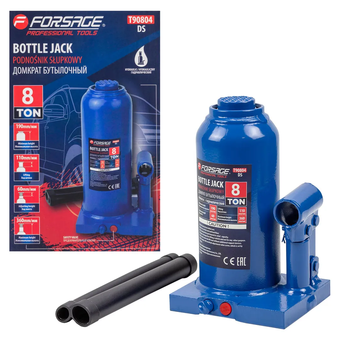 Домкрат бутылочный гидравлический с клапаном широко применяется на производствах, шиномонтажах, станциях технического обслуживания, а также в частных гаражах. Позволяет эффективно и безопасно поднять транспортное средство или иной груз с целью проведения ремонтных работ. Преимущества бутылочного домкрата: При относительно небольшом прикладываемом усилии имеет достаточно большую грузоподъемность и высокий КПД. Отличная точность фиксации груза, плавность хода штока. Домкрат оснащен специальным предохранительным клапаном для защиты от перегрузки. Компактные размеры, мобильность и легкость транспортировки (обязательно сохранять вертикальное положение устройства для предотвращения утечки масла).
