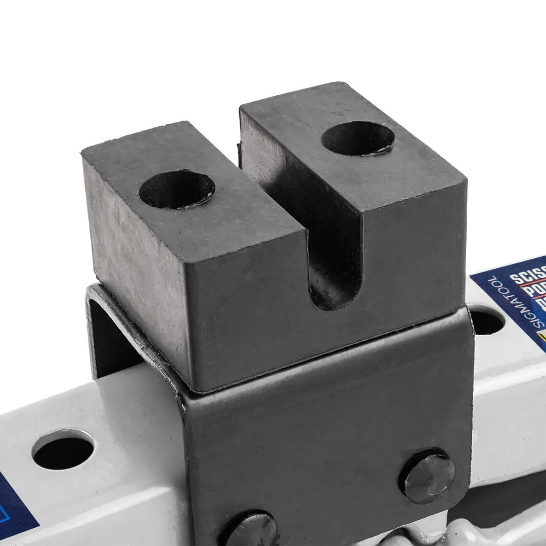 Платформа подъёма имеет размер 150×90 мм, что обеспечивает хорошую устойчивость. В комплект также входит трещоточный ключ длиной 340 мм, упрощающий работу и позволяющий быстро выполнять подъём без лишних усилий. Специальная прорезиненная накладка (размеры 48×41 мм, толщина 23 мм) обеспечивает надёжный упор и защищает кузов автомобиля от повреждений. Для удобства хранения и транспортировки в комплект входит фирменн
