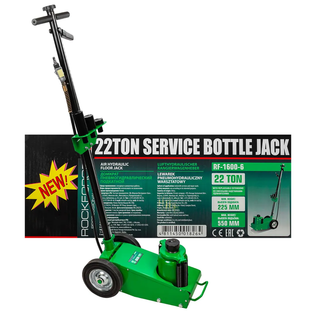 Профессиональный пневмогидравлический домкрат грузоподъемностью 22 тонны предназначен для подъема грузовых автомобилей, автобусов, строительной и другой крупной техники при проведении шиномонтажных и иных работ в автосервисах, мастерских, автобусных парках.