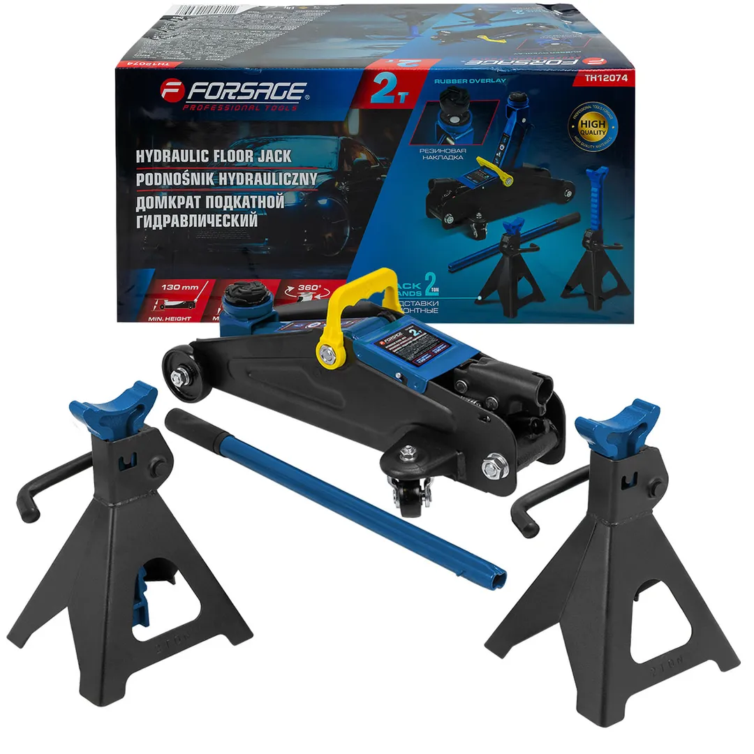 Домкрат подкатной гидравлический идеально подходит для ежедневного использования в автомастерской, на шиномонтаже или в гараже. Прочный гидравлический блок с поршневым насосом обеспечивает быстрый подъем автомобиля без особых усилий. Подходит для легковых автомобилей. Использовать только на ровной поверхности. Обязательно использовать ремонтные подставки для обеспечения безопасности. Домкрат рассчитан на поднятие и опускание автомобиля, использовать только по назначению. Легко можно перевозить в багажнике, занимает мало места. Домкрат оснащен 2 фиксированными и 2 поворотными колесами, поэтому его можно легко перемещать. В комплекте прочная резиновая накладка, которая предотвращает от повреждения автомобиля: исключает возможность повредить кузов, предохраняет от самопроизвольного соскальзывания. Благодаря предохранительному клапану домкрат соответствует стандарту безопасности.