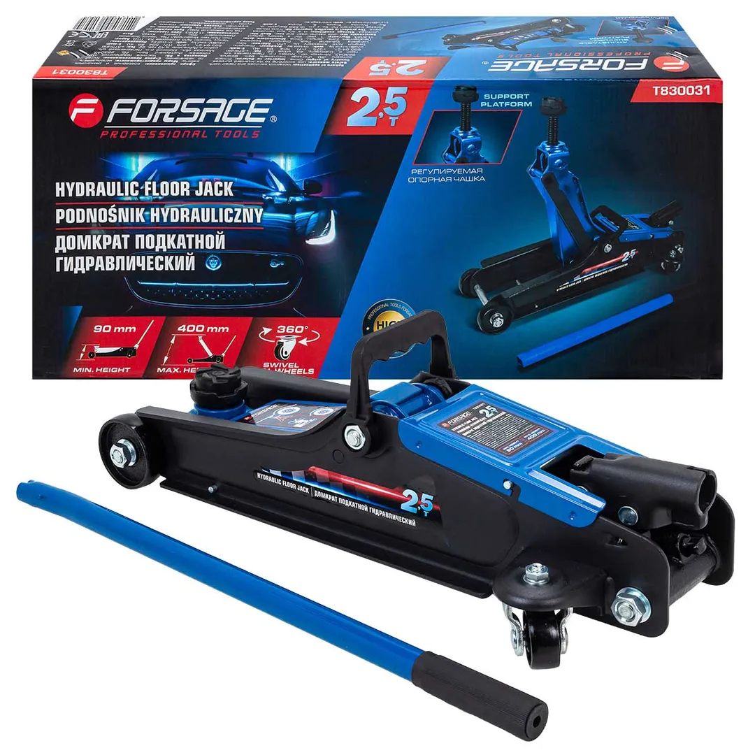 Домкрат подкатной гидравлический идеально подходит для ежедневного использования в автомастерской, на шиномонтаже или в гараже. Прочный гидравлический блок с поршневым насосом обеспечивает быстрый подъем автомобиля без особых усилий. Подходит для легковых автомобилей. Использовать только на ровной поверхности. Обязательно использовать ремонтные подставки для обеспечения безопасности. Домкрат рассчитан на поднятие и опускание автомобиля, использовать только по назначению. Легко можно перевозить в багажнике, занимает мало места. Домкрат оснащен 2 фиксированными и 2 поворотными колесами, поэтому его можно легко перемещать. В комплекте прочная резиновая накладка, которая предотвращает от повреждения автомобиля: исключает возможность повредить кузов, предохраняет от самопроизвольного соскальзывания. Благодаря предохранительному клапану домкрат соответствует стандарту безопасности. Особенности конструкции - низкий профиль: подходит для использования с низким клиренсом (спорткары и некоторые седаны); регулируемая оп