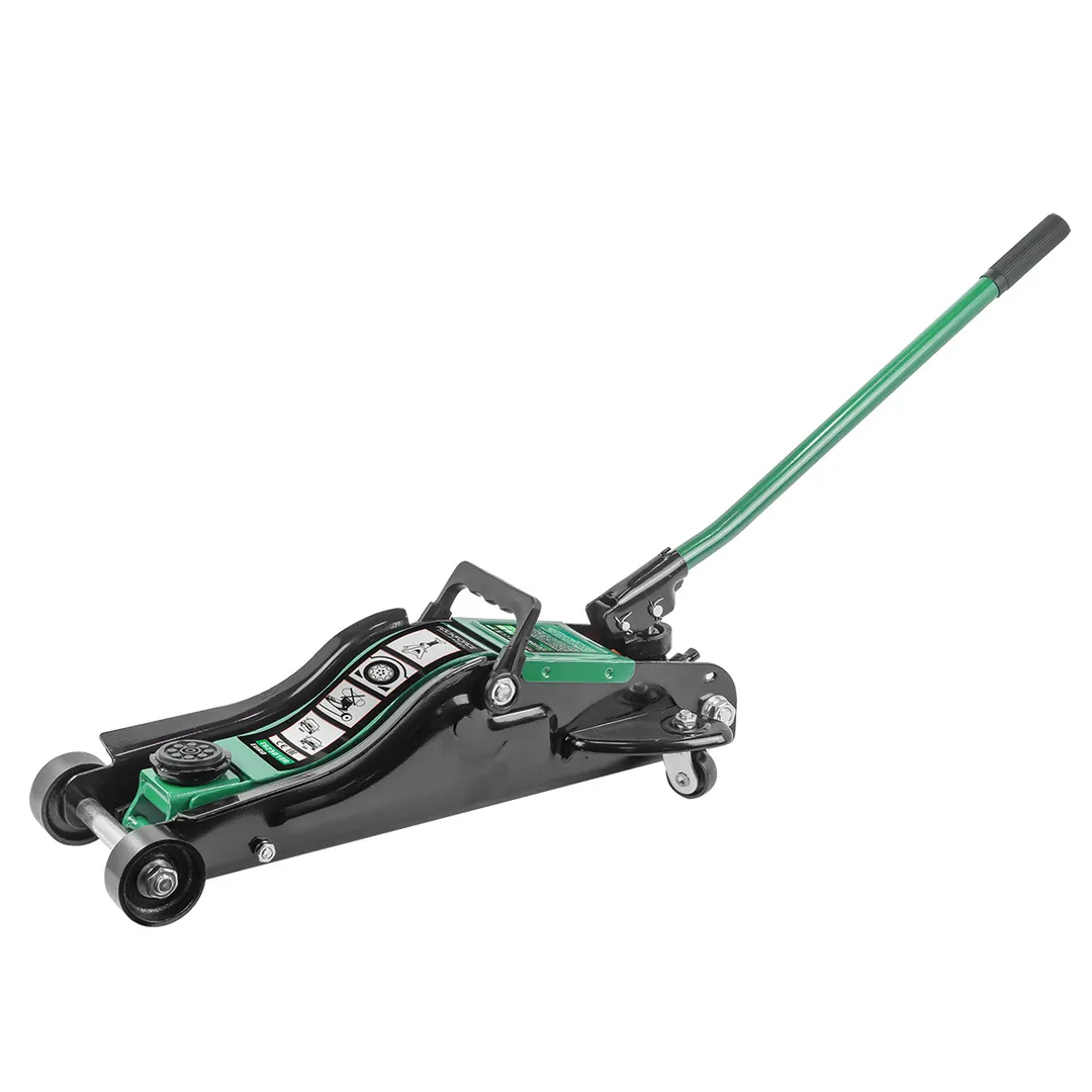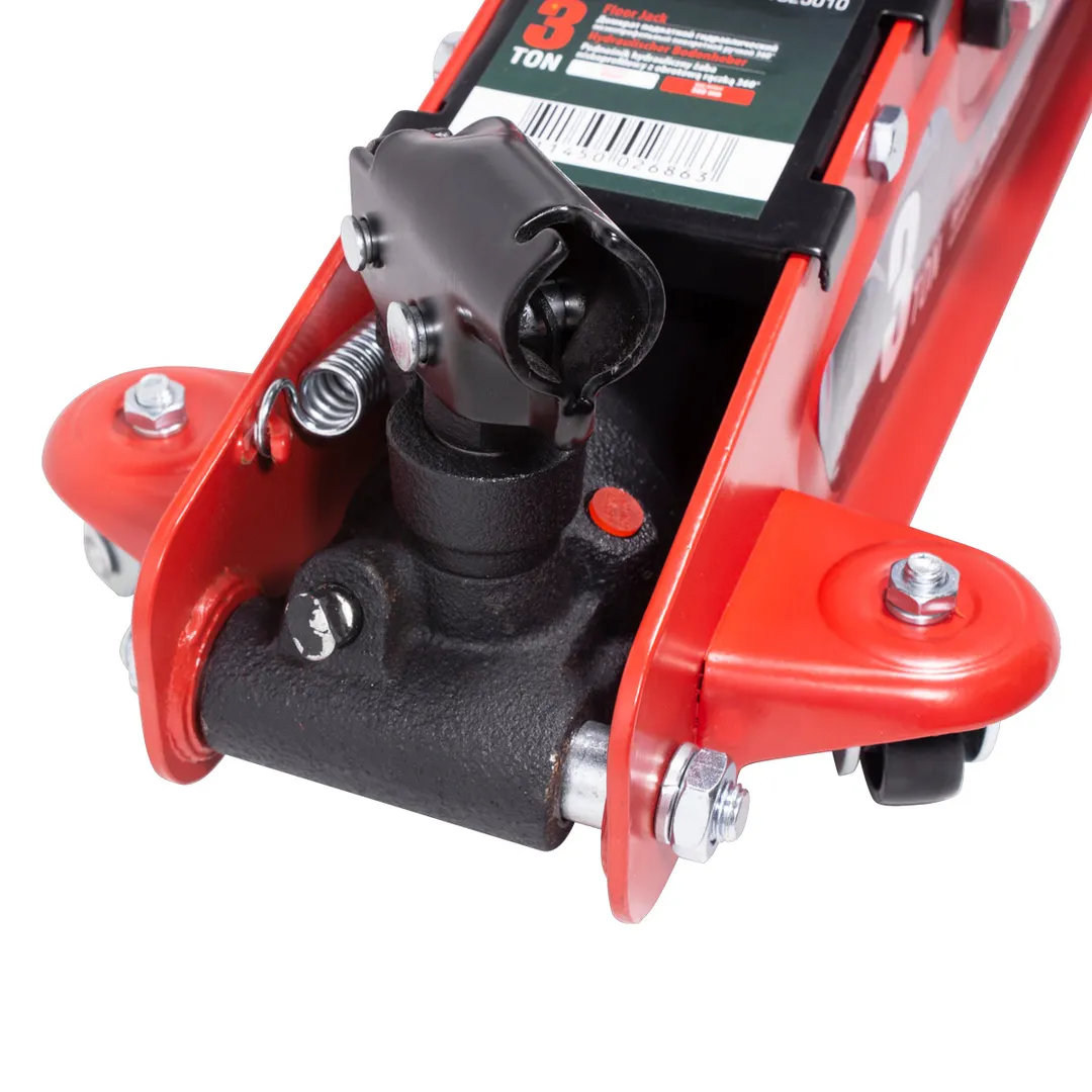 Домкрат подкатной гидравлический 3т идеально подходит для ежедневного использования в автомастерской, на шиномонтаже или в гараже. Прочный гидравлический блок с поршневым насосом обеспечивает быстрый подъем автомобиля без особых усилий. Подъем и опускание можно легко регулировать. Мобильность и надежность: домкрат оснащен 2 фиксированными и 2 поворотными колесами, поэтому его можно легко перемещать. Благодаря предохранительному клапану домкрат соответствует стандарту безопасности. Особенность конструкции - низкий профиль: подходит для использования с низким клиренсом (спорткары и некоторые седаны); поворотная ручка обечспечивает удобство при работе в ограниченных пространствах. В комплекте прочная резиновая накладка, которая предотвращает от повреждения автомобиля: исключает возможность повредить кузов, предохраняет от самопроизвольного соскальзывания.