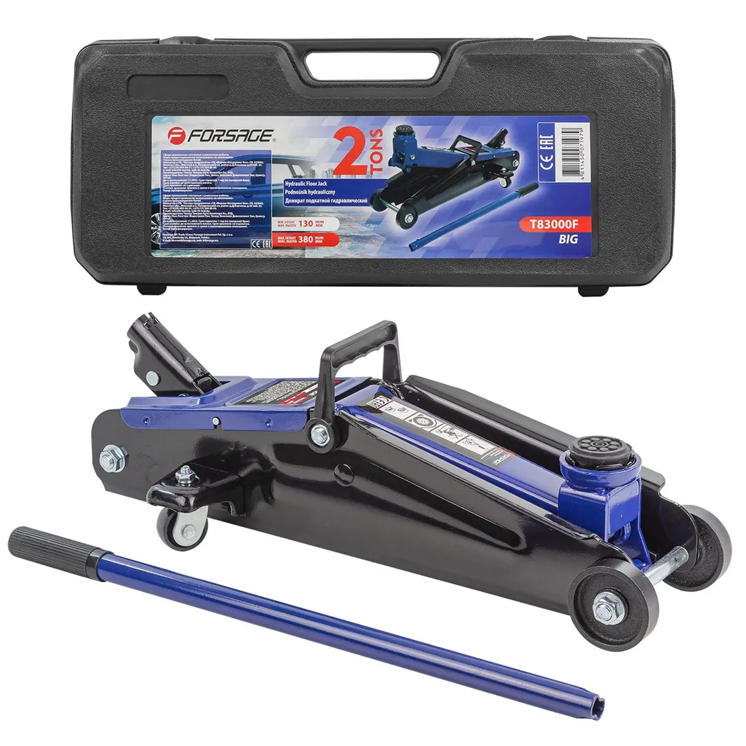 Домкрат подкатной гидравлический идеально подходит для ежедневного использования в автомастерской, на шиномонтаже или в гараже. Прочный гидравлический блок с поршневым насосом обеспечивает быстрый подъем автомобиля без особых усилий. Подходит для легковых автомобилей. Использовать только на ровной поверхности. Обязательно использовать ремонтные подставки для обеспечения безопасности. Домкрат рассчитан на поднятие и опускание автомобиля, использовать только по назначению. Легко можно перевозить в багажнике, занимает мало места. Домкрат оснащен 2 фиксированными и 2 поворотными колесами, поэтому его можно легко перемещать. В комплекте прочная резиновая накладка, которая исключает возможность повредить кузов, предохраняет от самопроизвольного соскальзывания. Благодаря предохранительному клапану домкрат соответствует стандарту безопасности.