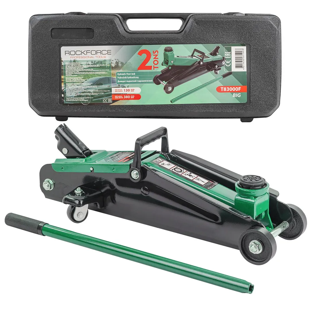 Домкрат подкатной гидравлический идеально подходит для ежедневного использования в автомастерской, на шиномонтаже или в гараже. Прочный гидравлический блок с поршневым насосом обеспечивает быстрый подъем автомобиля без особых усилий. Подходит для легковых автомобилей. Использовать только на ровной поверхности. Обязательно использовать ремонтные подставки для обеспечения безопасности. Домкрат рассчитан на поднятие и опускание автомобиля, использовать только по назначению. Легко можно перевозить в багажнике, занимает мало места. Домкрат оснащен 2 фиксированными и 2 поворотными колесами, поэтому его можно легко перемещать. В комплекте прочная резиновая накладка, которая исключает возможность повредить кузов, предохраняет от самопроизвольного соскальзывания. Благодаря предохранительному клапану домкрат соответствует стандарту безопасности.