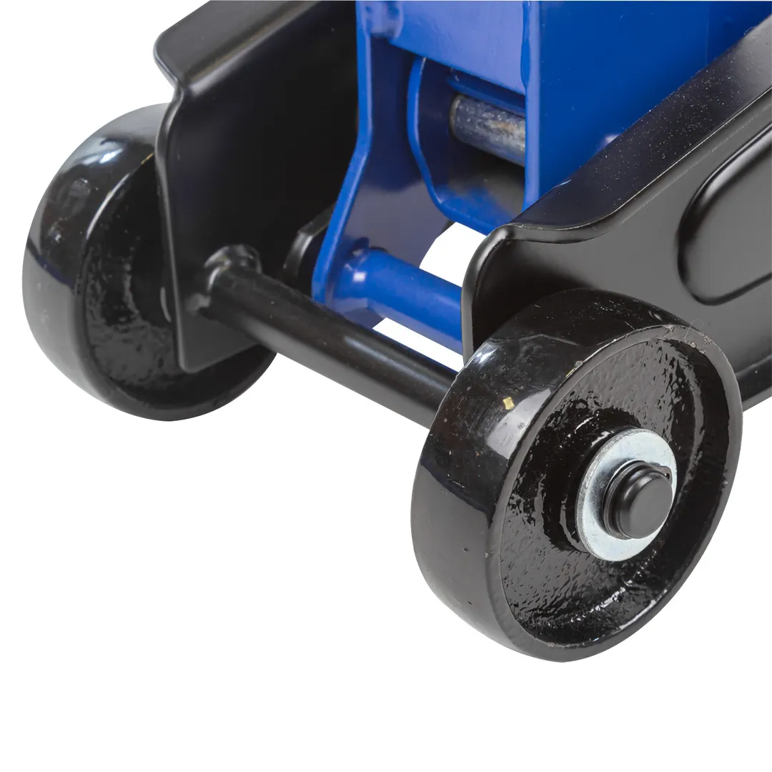 Домкрат подкатной гидравлический идеально подходит для ежедневного использования в автомастерской, на шиномонтаже или в гараже. Прочный гидравлический блок с поршневым насосом обеспечивает быстрый подъем автомобиля без особых усилий. Подходит для легковых автомобилей. Использовать только на ровной поверхности. Обязательно использовать ремонтные подставки для обеспечения безопасности. Домкрат рассчитан на поднятие и опускание автомобиля, использовать только по назначению. Легко можно перевозить в багажнике, занимает мало места. Домкрат оснащен 2 фиксированными и 2 поворотными колесами, поэтому его можно легко перемещать. Благодаря предохранительному клапану домкрат соответствует стандарту безопасности.