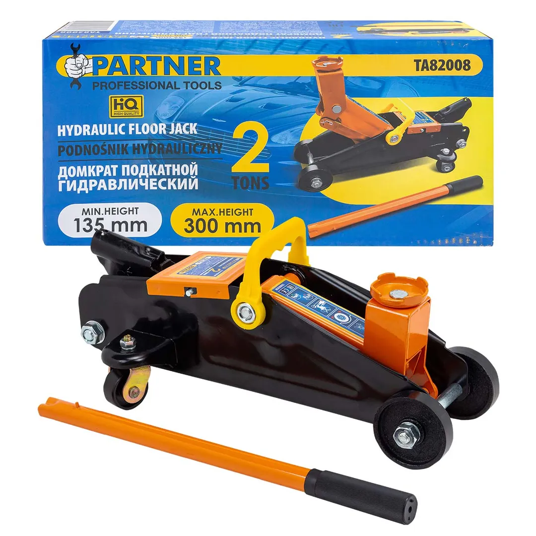 Напольный подкатной домкрат используется для большинства легковых автомобилей с массой до 2тонн. Гидравлическая система домкрата работает очень хорошо для высокого подъема с небольшим усилием и позволяет поднимать автомобиль на желаемую высоту более плавно и быстро. Встроенный внутренний предохранительный клапан включает автоматическую защиту при перегрузке , чтобы предотвратить повреждение домкрата и обеспечить безопасную работу. Встроенная ручка для переноски позволяет быстро перемещать домкрат. Прочная стальная конструкция обеспечивает длительный срок службы. Оснащен двумя большими стальными колесами и двумя малыми поворотными колёсами на 360 градусов для плавной маневренности.