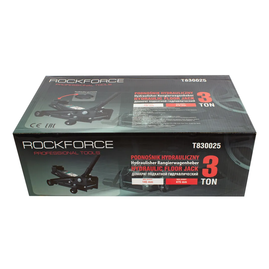 Домкрат подкатной гидравлический 3 тонны. Высота подхвата 145 мм, максимальная высота подъема 465 мм. Максимальная нагрузка: 3 тонны. Идеально подходит для ежедневного использования в автомастерской, на шиномонтаже или в гараже. Прочный гидравлический блок с поршневым насосом обеспечивает быстрый подъем автомобиля без особых усилий. Подходит для легковых автомобилей. Использовать только на ровной поверхности. Обязательно использовать ремонтные подставки для обеспечения безопасности. Домкрат рассчитан на поднятие и опускание автомобиля, использовать только по назначению. При выборе домкрата обращайте внимание на клиренс вашего автомобиля, т.к. высота подхвата 145 мм. Легко можно перевозить в багажнике, занимает мало места. Мобильность и надёжность: домкрат оснащен 2 фиксированными и 2 поворотными колесами, поэтому его можно легко перемещать. В комплекте прочная резиновая накладка, которая предотвращает от повреждения автомобиля: исключает возможность повредить кузов, предохраняет от самопроизвольного соскальзы