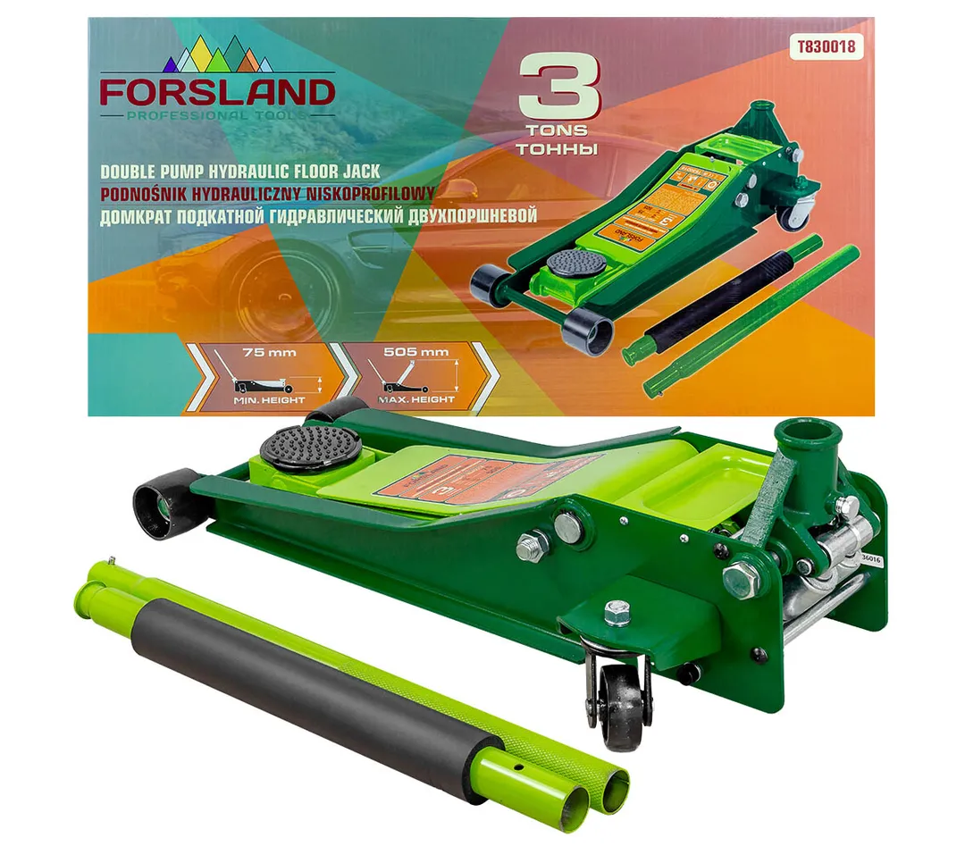 Домкрат подкатной гидравлический двухпоршневой 3т низкопрофильный с прорезиненной накладкой на рукоятке имеет высоту подхвата от 75 мм до 505 мм. Это позволяет использовать его для подъема различных типов автомобилей, включая низкопрофильные модели. Домкрат оснащен двумя поршнями, что обеспечивает более равномерное распределение нагрузки и повышает его стабильность во время подъема. Прорезиненная накладка на рукоятке обеспечивает удобство и комфорт при использовании.Мобильность и надежность: домкрат оснащен 2 фиксированными и 2 поворотными колесами, поэтому его можно легко перемещать. Благодаря предохранительному клапану домкрат соответствует стандарту безопасности. Особенность конструкции - низкий профиль: подходит для авто с низким клиренсом.В комплекте прочная резиновая накладка, которая предотвращает от повреждения автомобиля: исключает возможность повредить кузов, предохраняет от самопроизвольного соскальзывания.