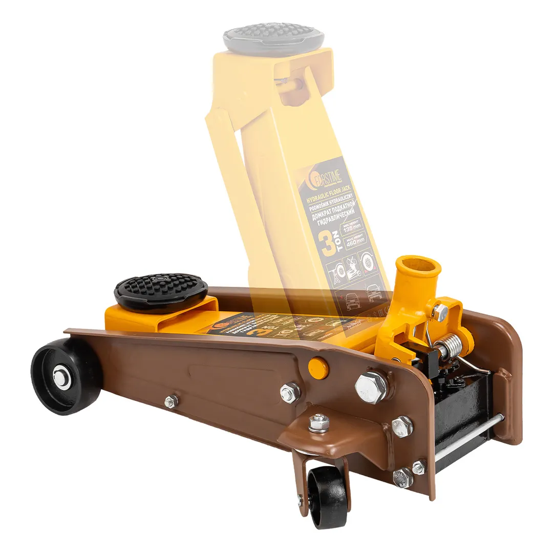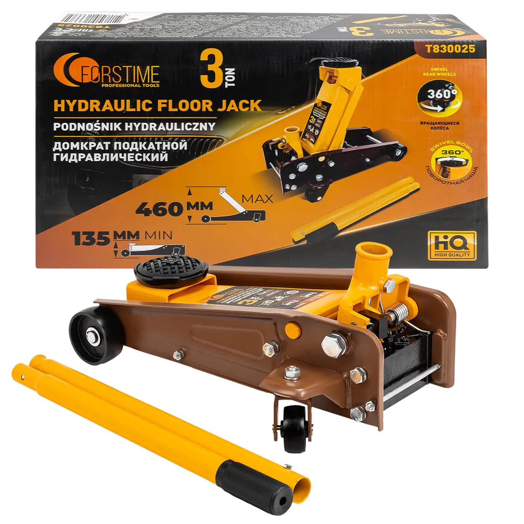Домкрат подкатной гидравлический 3 тонны. Высота подхвата 135 мм, максимальная высота подъема 460 мм. Идеально подходит для ежедневного использования в автомастерской, на шиномонтаже или в гараже. Прочный гидравлический блок с поршневым насосом обеспечивает быстрый подъем автомобиля без особых усилий. Подходит для легковых автомобилей. Использовать только на ровной поверхности. Обязательно использовать ремонтные подставки для обеспечения безопасности. Домкрат рассчитан на поднятие и опускание автомобиля, использовать только по назначению. При выборе домкрата обращайте внимание на клиренс вашего автомобиля, т.к. высота подхвата 135 мм. Легко можно перевозить в багажнике, занимает мало места. Мобильность и надёжность: домкрат оснащен 2 фиксированными и 2 поворотными колесами, поэтому его можно легко перемещать. В комплекте прочная резиновая накладка, которая предотвращает от повреждения автомобиля: исключает возможность повредить кузов, предохраняет от самопроизвольного соскальзывания. Благодаря предохранительн