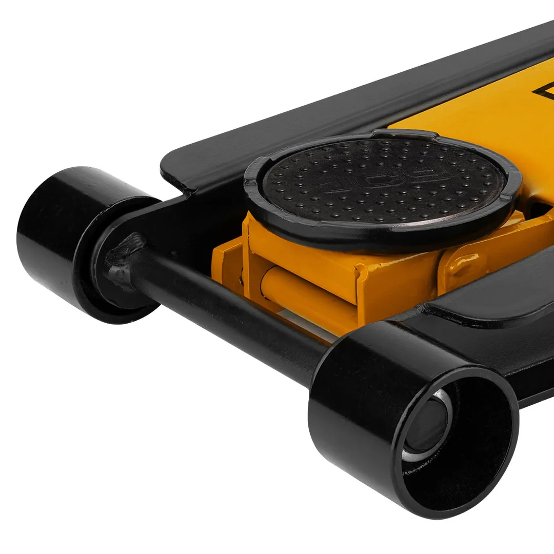 Домкрат подкатной автомобильный от бренда JCB является высококачественным оборудованием, которое предназначено для подъема автомобилей в автосервисах, шиномонтажных центрах по ремонту и техническому обслуживанию или в гараже. Устойчивый стальной корпус обеспечивает прочность и износостойкость. Подходит для автомобилей с низким клиренсом.