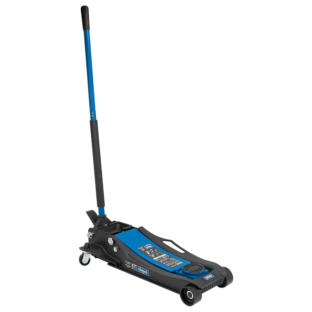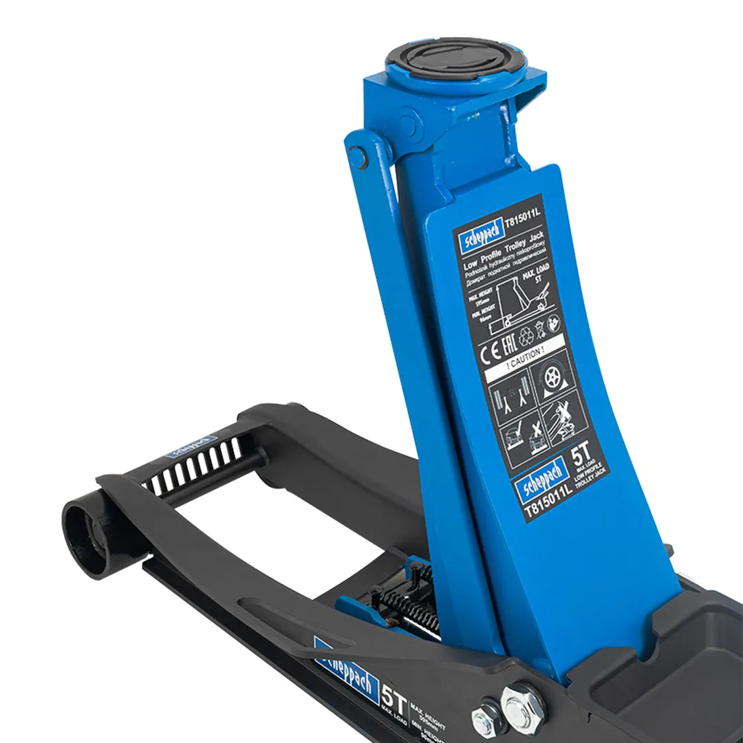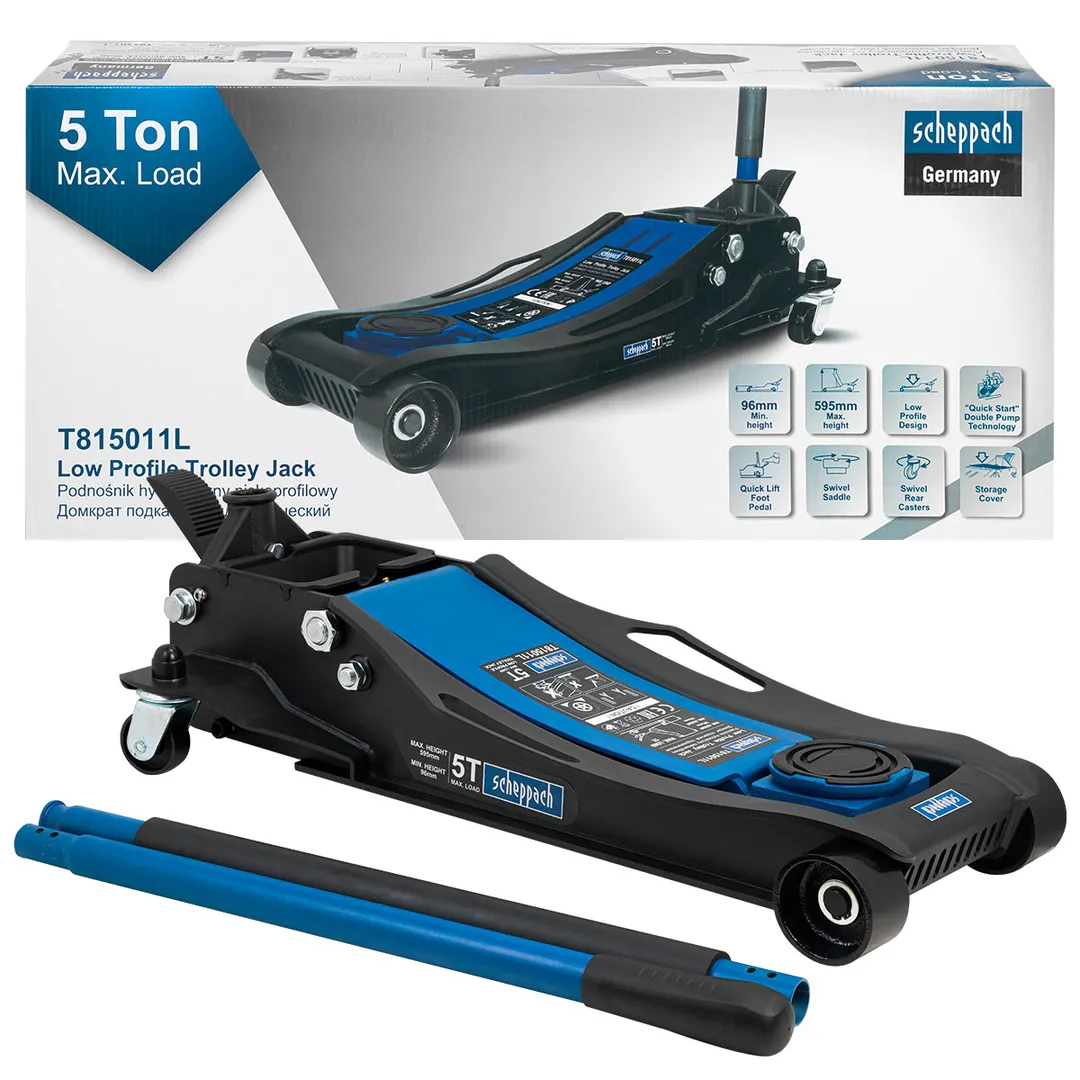 Гидравлический подкатной домкрат грузоподъемностью 5 тонны — это профессиональное оборудование для подъема транспортных средств при проведении ремонтных и сервисных работ. Домкрат обладает рабочим диапазоном высот от 96 мм до 595 мм, что позволяет работать с низкопрофильными автомобилями и внедорожниками. Конструкция оснащена двухсекционным гидравлическим насосом с системой безопасности против перегрузки и аварийным сбросом давления. Стальная рама с усиленными ребрами жесткости и полиамидными роликами обеспечивает устойчивость на поверхности с нагрузкой до 5 тонн. Опорная лапа из кованой стали с противоскользящим покрытием гарантирует фиксацию автомобиля в поднятом положении. Домкрат предназначен для использования на ровных твердых покрытиях с обязательным применением страховочных подставок. Вся продукция сертифицирована и соответствует требованиям безопасности при эксплуатации в автосервисах и частных мастерских.
