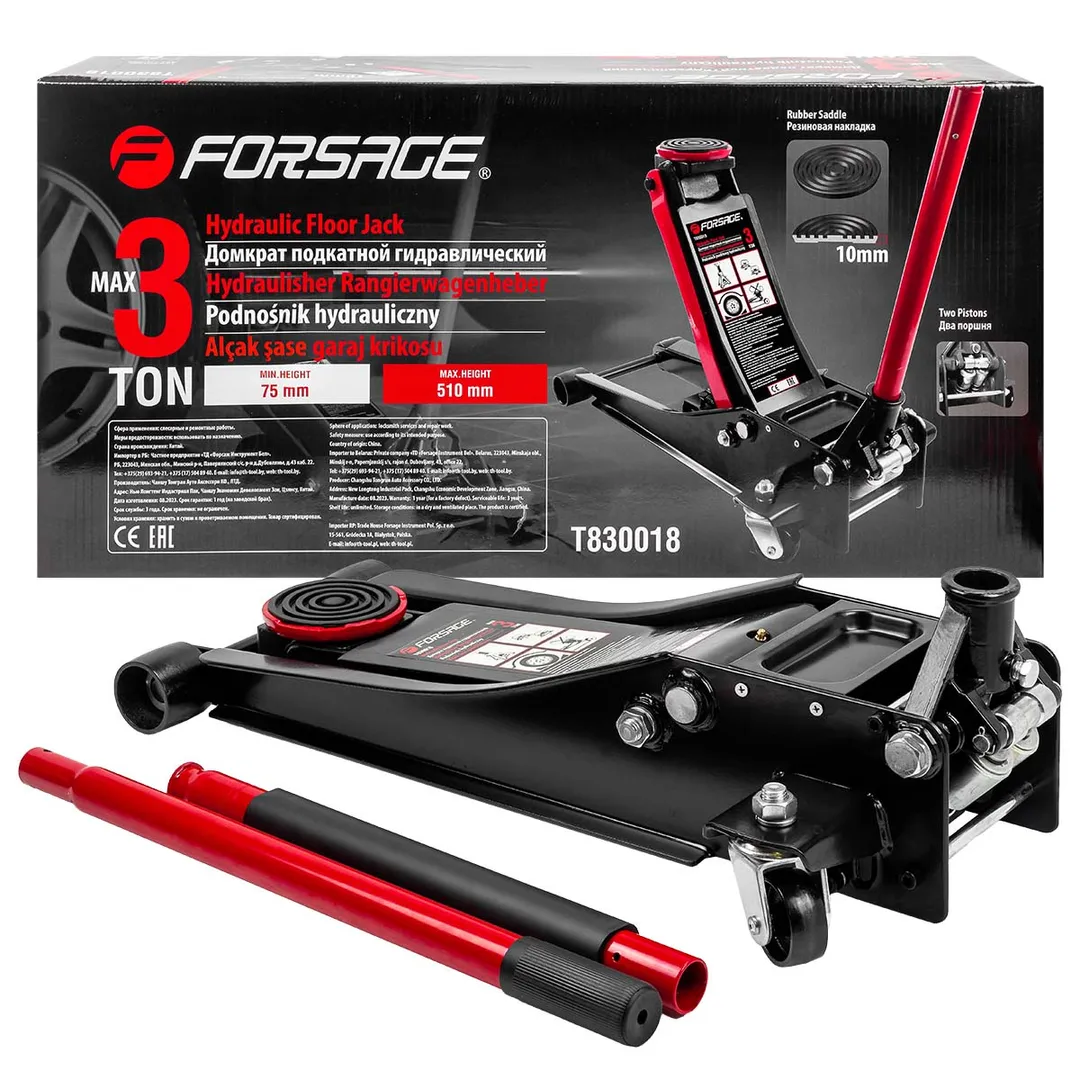 Домкрат подкатной гидравлический двухпоршневой 3т низкопрофильный с прорезиненной накладкой на рукоятке имеет высоту подхвата от 75 мм до 510 мм. Это позволяет использовать его для подъема различных типов автомобилей, включая низкопрофильные модели. Домкрат оснащен двумя поршнями, что обеспечивает более равномерное распределение нагрузки и повышает его стабильность во время подъема. Прорезиненная накладка на рукоятке обеспечивает удобство и комфорт при использовании.Мобильность и надежность: домкрат оснащен 2 фиксированными и 2 поворотными колесами, поэтому его можно легко перемещать. Благодаря предохранительному клапану домкрат соответствует стандарту безопасности. Особенность конструкции - низкий профиль: подходит для авто с низким клиренсом.В комплекте прочная резиновая накладка, которая предотвращает от повреждения автомобиля: исключает возможность повредить кузов, предохраняет от самопроизвольного соскальзывания.