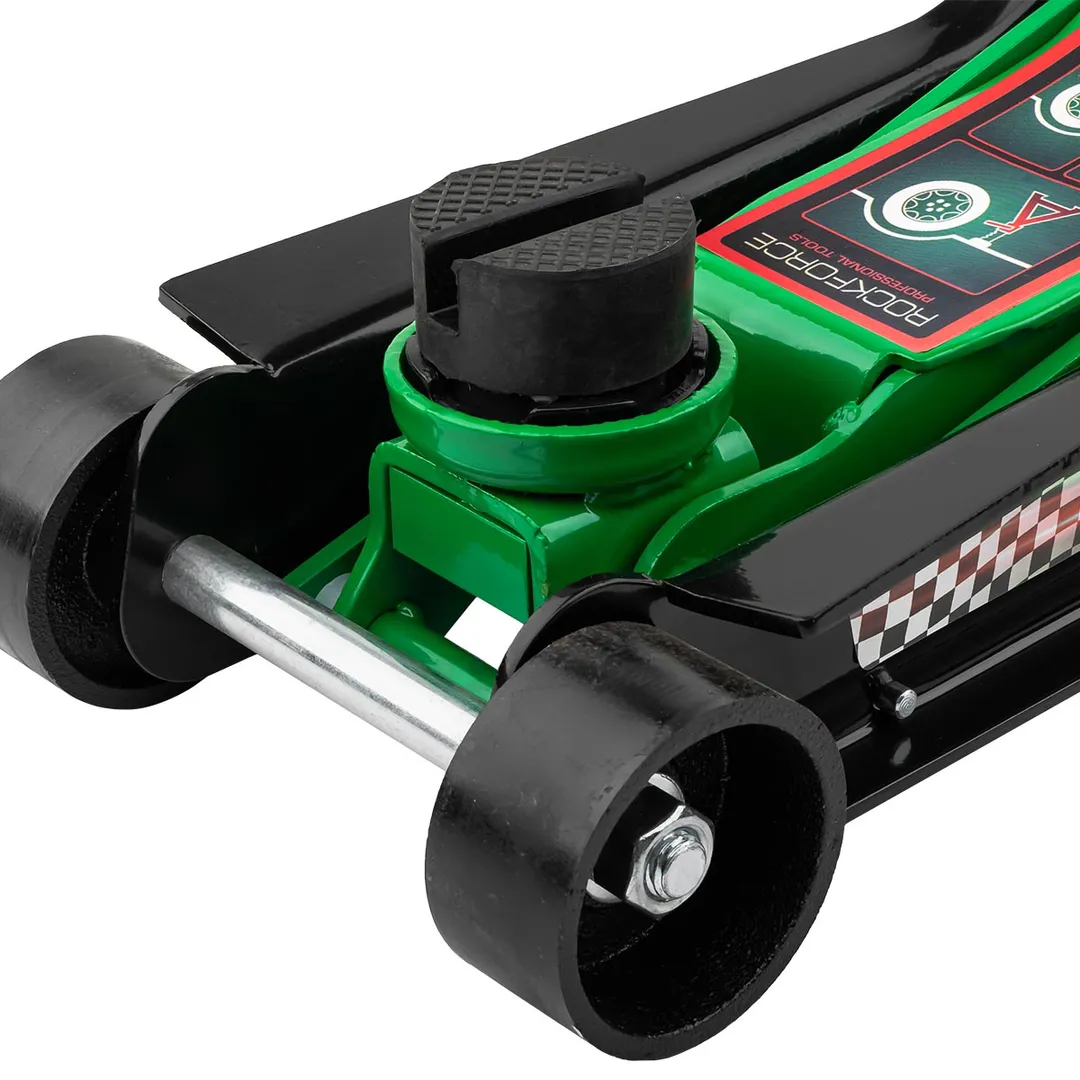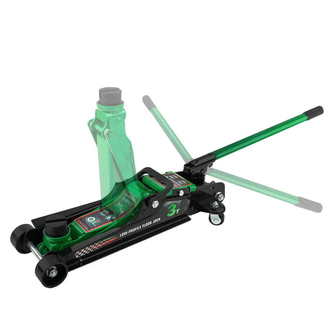 Домкрат подкатной гидравлический 3т идеально подходит для ежедневного использования в автомастерской, на шиномонтаже или в гараже. Прочный гидравлический блок с поршневым насосом обеспечивает быстрый подъем автомобиля без особых усилий. Подъем и опускание можно легко регулировать. Мобильность и надежность: домкрат оснащен 2 фиксированными и 2 поворотными колесами, поэтому его можно легко перемещать. Благодаря предохранительному клапану домкрат соответствует стандарту безопасности. Особенность конструкции - низкий профиль: подходит для использования с низким клиренсом (спорткары и некоторые седаны); поворотная ручка обечспечивает удобство при работе в ограниченных пространствах. Максимальная нагрузка: 3000 кг. Высота подхвата 85 мм. Высота подъёма 380 мм. В комплекте прочная резиновая накладка, которая предотвращает от повреждения автомобиля: исключает возможность повредить кузов, предохраняет от самопроизвольного соскальзывания
