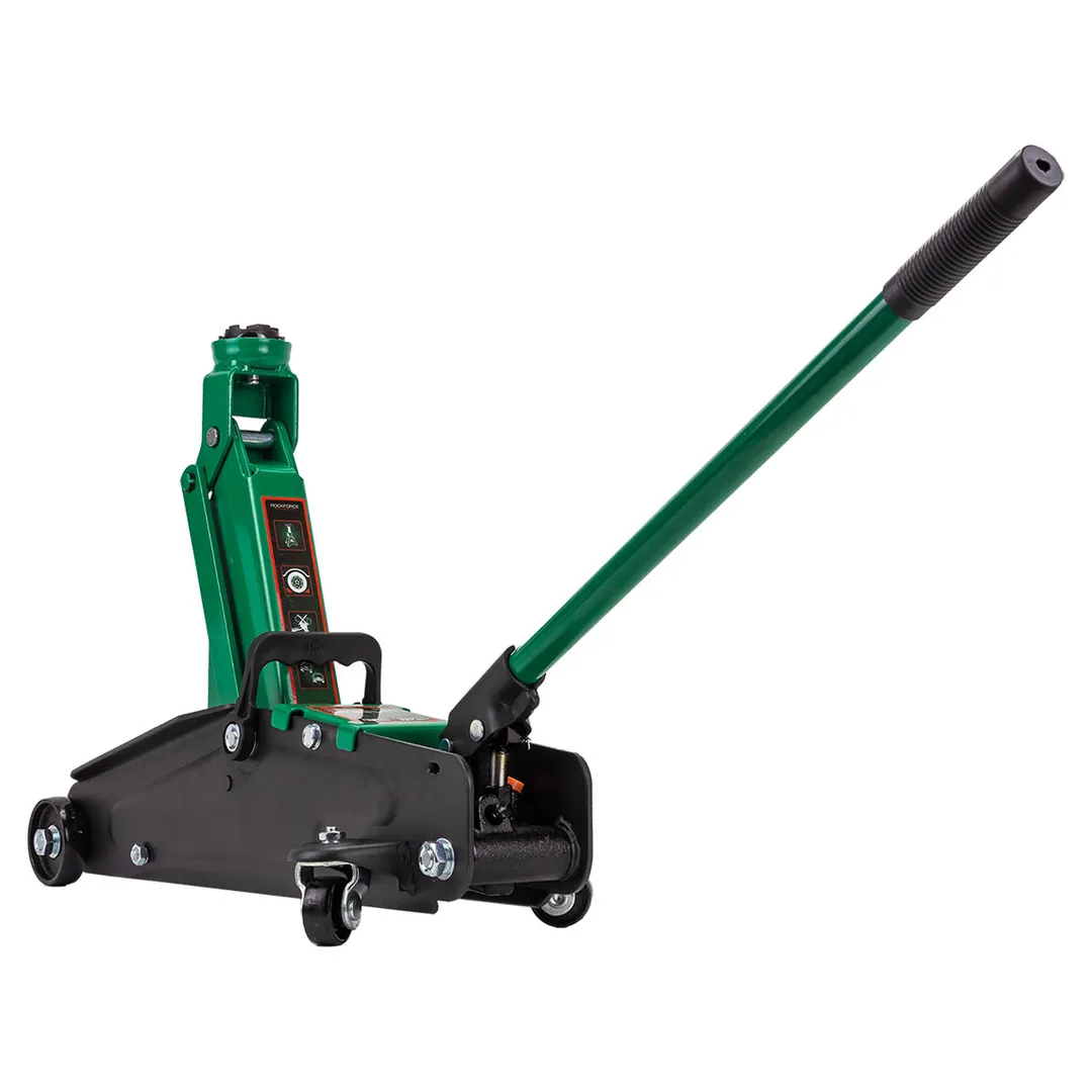 Домкрат подкатной гидравлический 2,5т, максимальная нагрузка 2,5т, высота подхвата 135 мм, высота подъёма 387 мм. Идеально подходит для ежедневного использования в автомастерской, на шиномонтаже или в гараже. Прочный гидравлический блок с поршневым насосом обеспечивает быстрый подъем автомобиля без особых усилий. Подъем и опускание можно легко регулировать. Мобильность и надежность: домкрат оснащен 2 фиксированными и 2 поворотными колесами, поэтому его можно легко перемещать. Благодаря предохранительному клапану домкрат соответствует стандарту безопасности. В комплекте прочная резиновая накладка, которая предотвращает от повреждения автомобиля: исключает возможность повредить кузов, предохраняет от самопроизвольного соскальзывания. Домкрат поставляется в прочном пластиковом кейсе.
