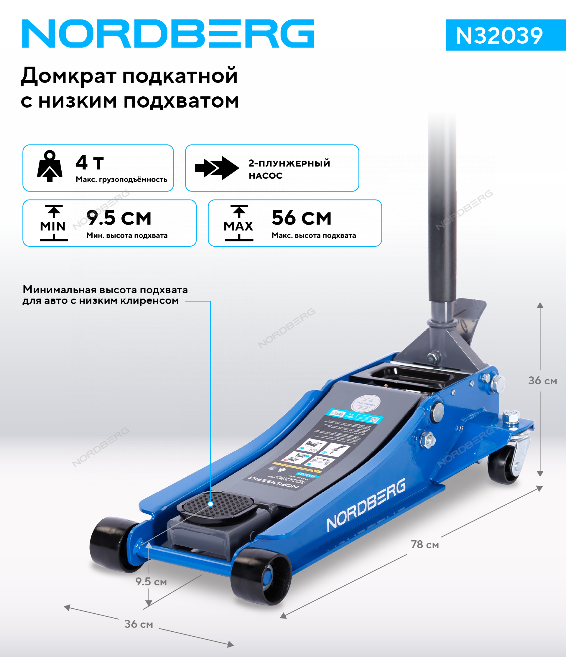 - Низкая высота подхвата, 9.5 см, подходит для авто с низким клиренсом;