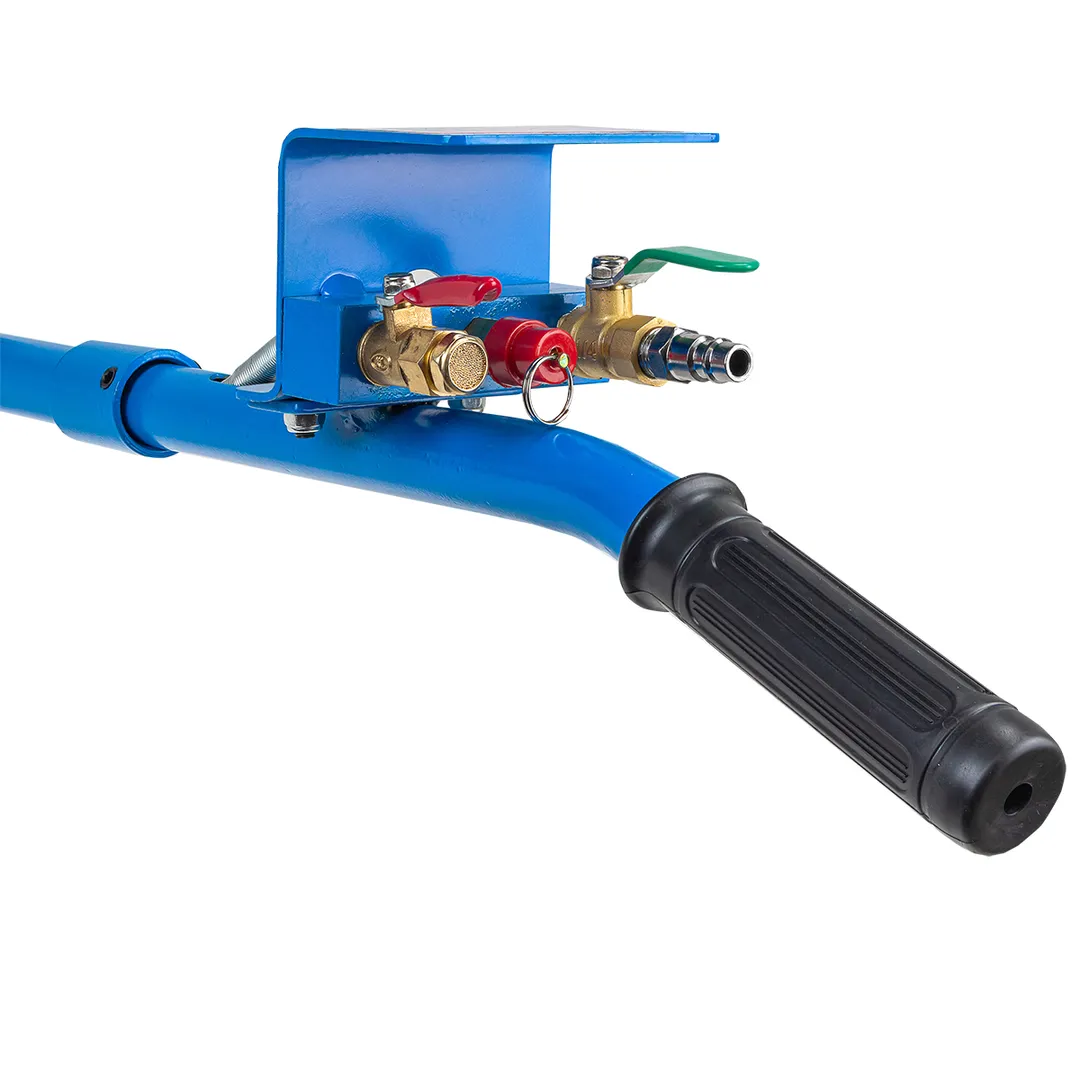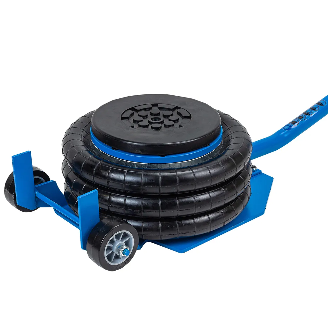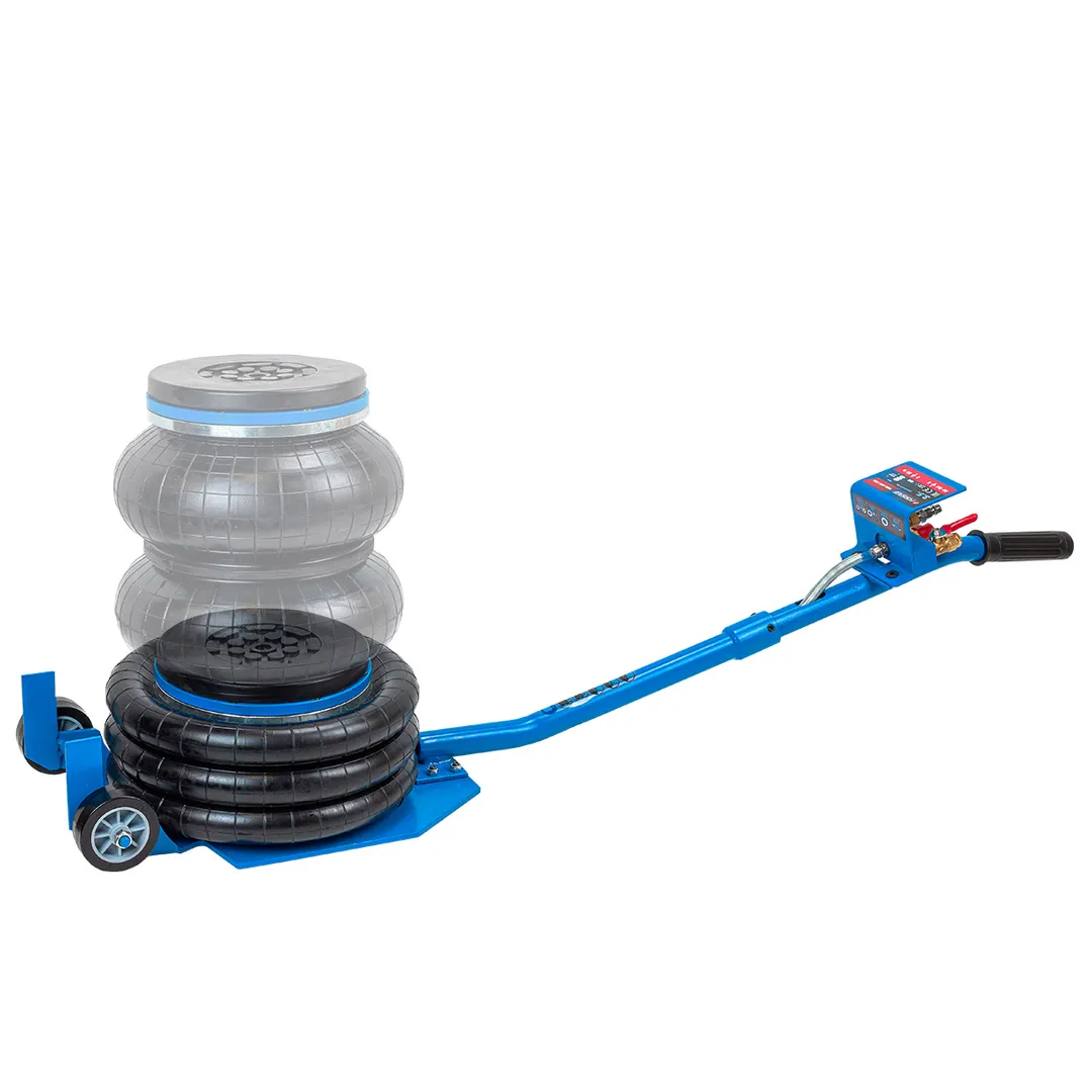 Профессиональный 3-камерный пневматический домкрат позволяет производить быстрый демонтаж и установку колес легковых автомобилей, а также необходимый местный ремонт подвески, узлов рулевого управления и тормозной системы. Домкрат подкатной пневматический имеет грузоподъемность 3.5 тонны и рассчитан на подключение к компрессору, подающему сжатый воздух под давлением от 6 до 12 бар. Устройство приводится в действие путем открытия крана подачи, расположенного на конце управляющей рукоятки. Конструкция данной модели включает три распорные резиновые подушки диаметром 270 мм, обеспечивающие максимальную высоту подъема объекта до 420 мм. Значение минимальной высоты подхвата (дорожный просвет автомобиля) составляет 135 мм. Если домкрат применяется в процессе ремонтных работ, поднятую сторону автомобиля следует зафиксировать при помощи дополнительных опор. Устройство рекомендовано для использования в гаражах, на СТО и в шиномонтажных мастерских.
