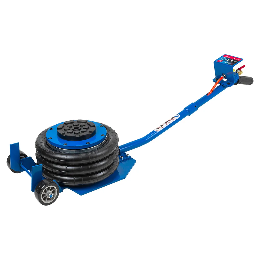 Домкрат пневматический подкатной грузоподъемностью 3 тонны — это профессиональное оборудование для быстрого и безопасного подъема легковых автомобилей в условиях автосервисов и шиномонтажных мастерских. Домкрат обеспечивает максимальную высоту подъема 400 мм при низком подхвате 145 мм и оснащен тремя распорными резиновыми подушками диаметром 255 мм для устойчивого контакта с кузовом. Конструкция включает защиту от перегрузки и управляется через кран подачи воздуха на рукоятке, работая от давления 6–12 бар. В комплект входит сам домкрат и рукоять, упакованные в картонную коробку. Оборудование предназначено для демонтажа колес, ремонта подвески, рулевого управления и тормозной системы, требует обязательной фиксации поднятой опоры дополнительными стойками при проведении работ.