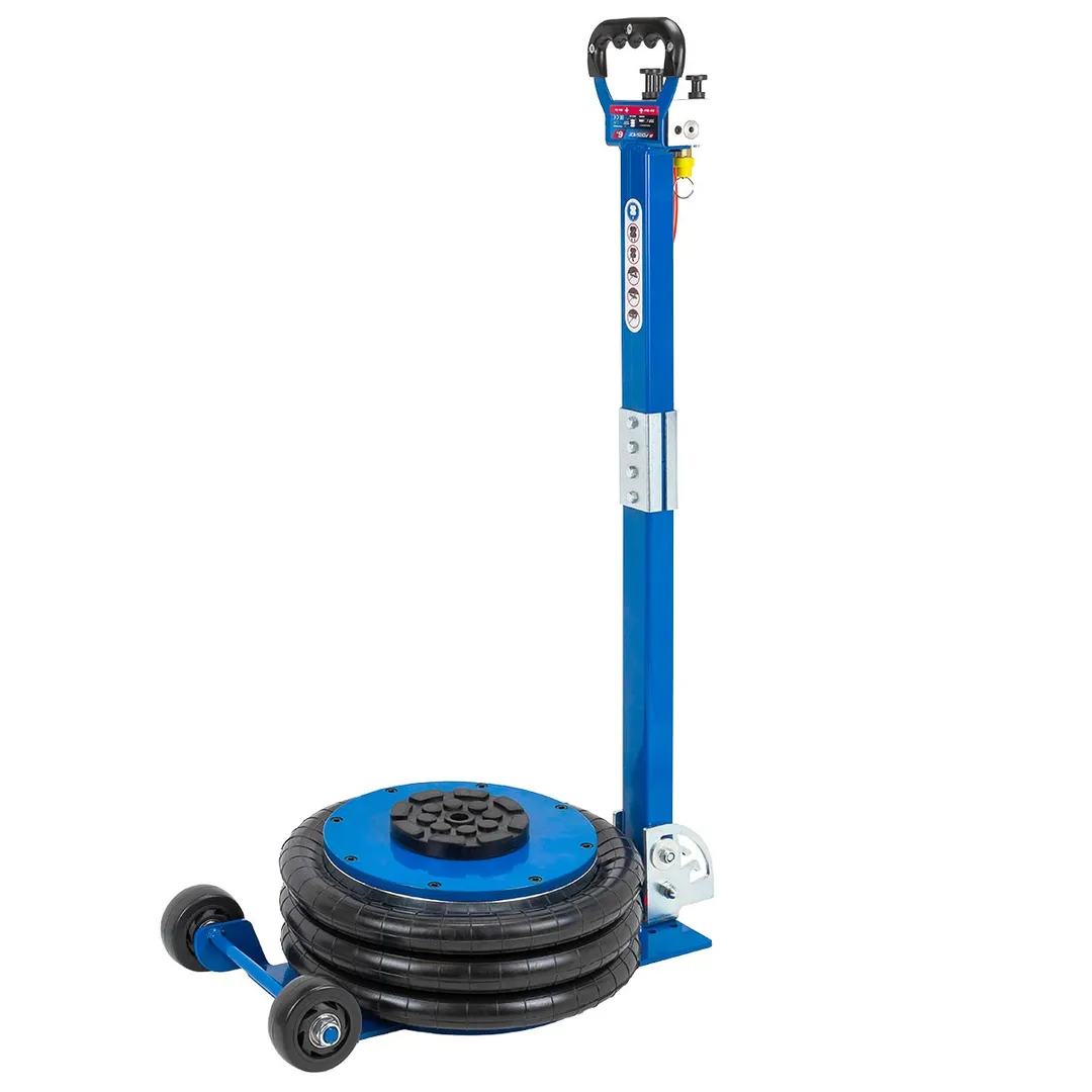 Профессиональный 3-камерный пневматический домкрат позволяет производить быстрый демонтаж и установку колес легковых автомобилей, а также необходимый местный ремонт подвески, узлов рулевого управления и тормозной системы. Домкрат подкатной пневматический имеет грузоподъемность 6 тонн и рассчитан на подключение к компрессору, подающему сжатый воздух под давлением от 6 до 12 бар. Устройство приводится в действие путем открытия крана подачи, расположенного на конце управляющей рукоятки. Конструкция данной модели включает три распорные резиновые подушки диаметром 300 мм, обеспечивающие максимальную высоту подъема объекта до 400 мм. Значение минимальной высоты подхвата (дорожный просвет автомобиля) составляет 150 мм. Домкрат также обладает рукояткой с регулируемым углом наклона, что обеспечивает дополнительное удобство при работе. Если домкрат применяется в процессе ремонтных работ, поднятую сторону автомобиля следует зафиксировать при помощи дополнительных опор. Устройство рекомендовано для использования в гаража