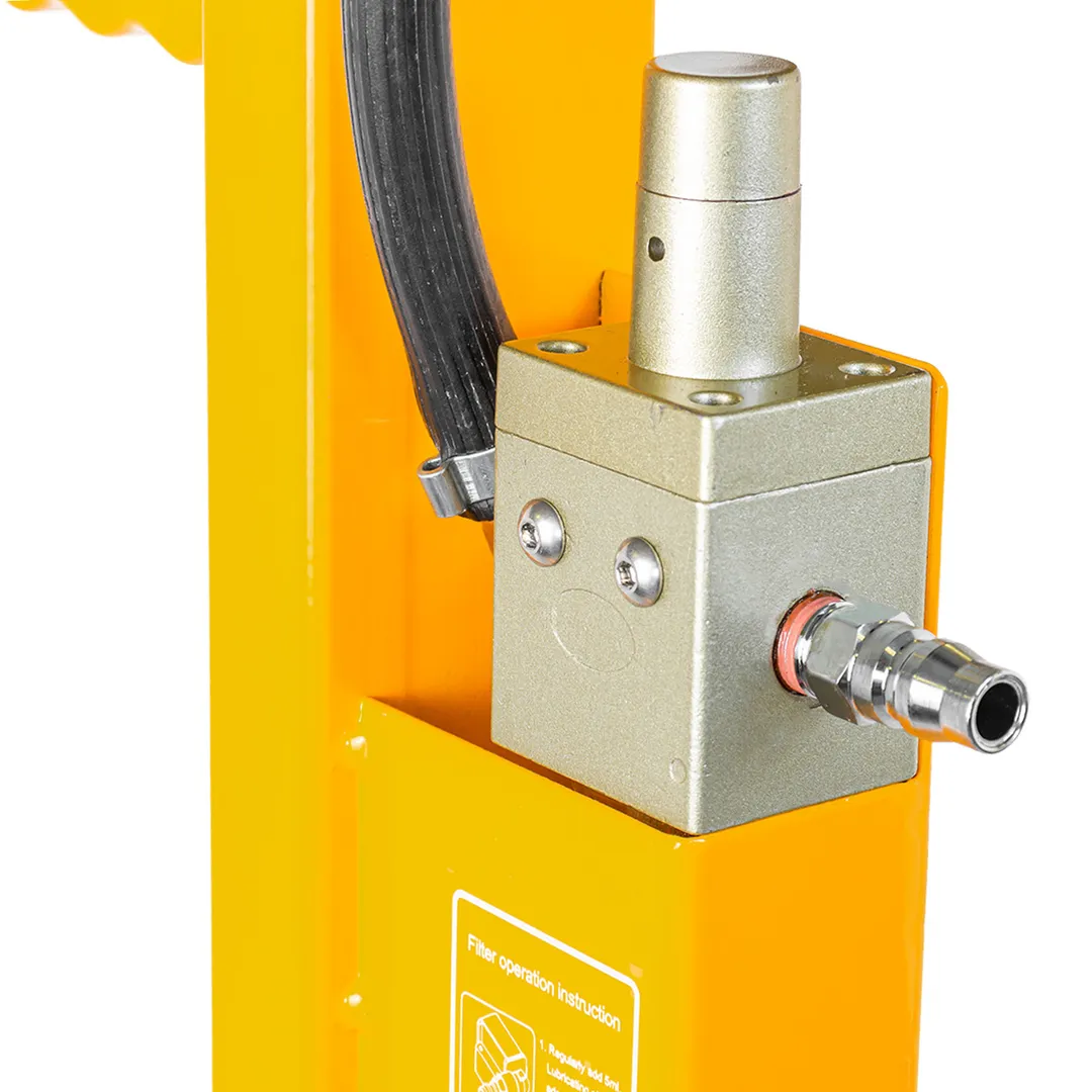 Домкрат пневмогидравлический подкатной - идеальный инструмент для проведении шиномонтажных и иных работ в автосервисах, мастерских, автобусных парках. Домкрат предназначен для подъема грузовых автомобилей, автобусов, строительной и другой крупной техники при проведении шиномонтажных и иных работ в автосервисах, мастерских, автобусных парках. Пневмогидравлический механизм подразумевает использование воздушного компрессора или другого источника сжатого воздуха для поднятия гидравлического поршня домкрата. Ручка домкрата оборудована штуцером под быстросьем USA-типа, фильтром для воздуха и рычагом для поднятия/опускания штока. Также ручка домкрата может фиксироваться под углами 90°, 135° и 180°, что обеспечивает удобство перемещения домкрата в рамках рабочей зоны. Домкрат также оснащен сменными удлинителями длиной 50, 100 и 150мм,что позволяет легко отрегулировать высоту в соответствии с потребностями. Характеристики:Грузоподьемность 35т Высота подхвата 360мм Максимальная высота подьема 910мм Ход штока 250мм, про